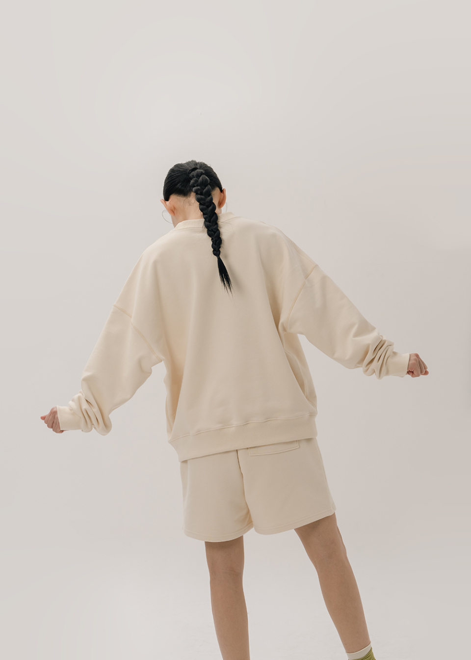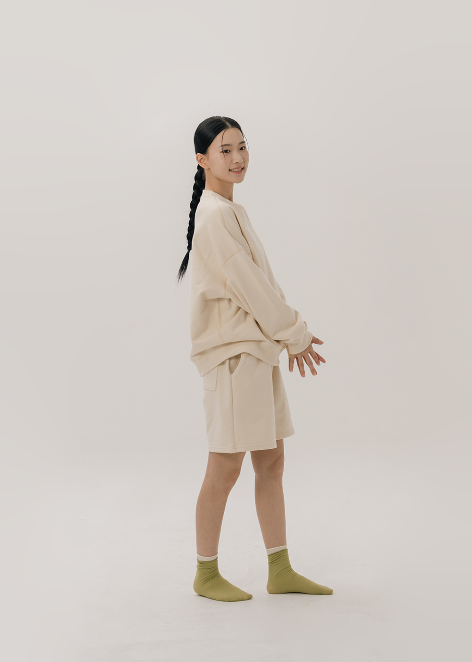 고중량의 탄탄한 프렌치 테리원단을 사용했으며 오드람프 스티치로 피부에도 쓸림없고 내구성이 좋은 봉제를 사용했습니다.