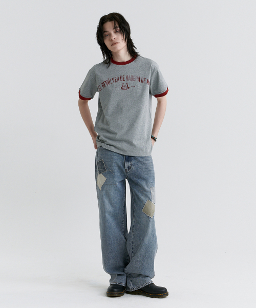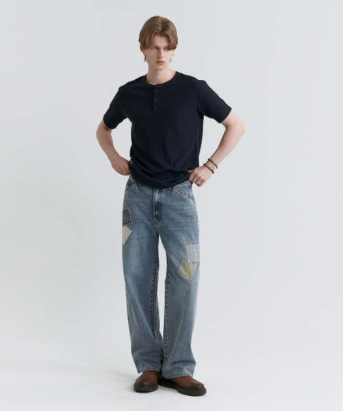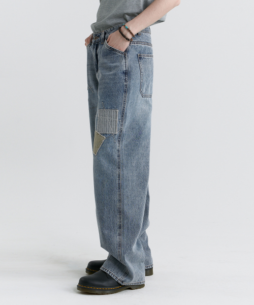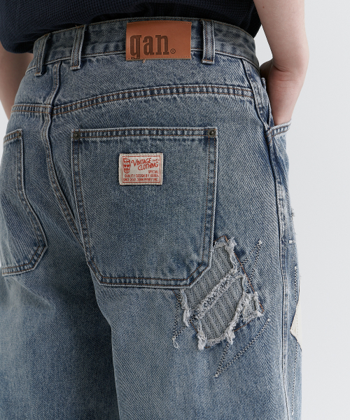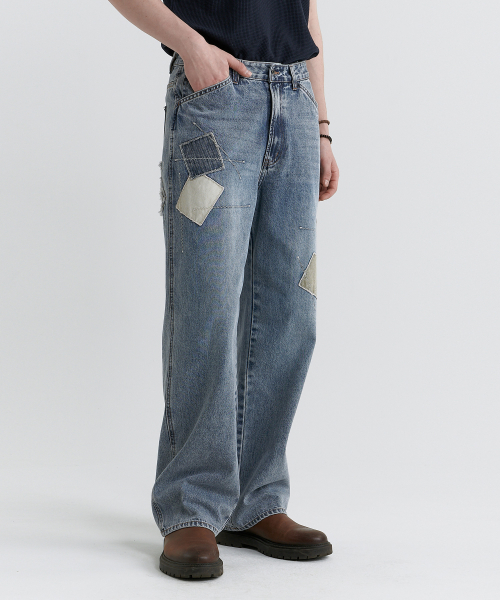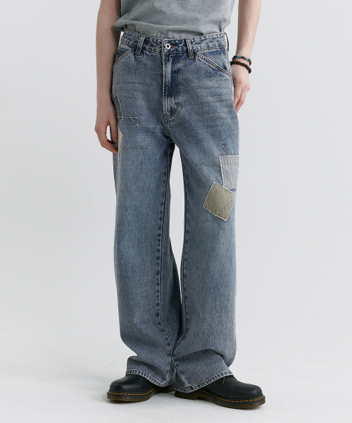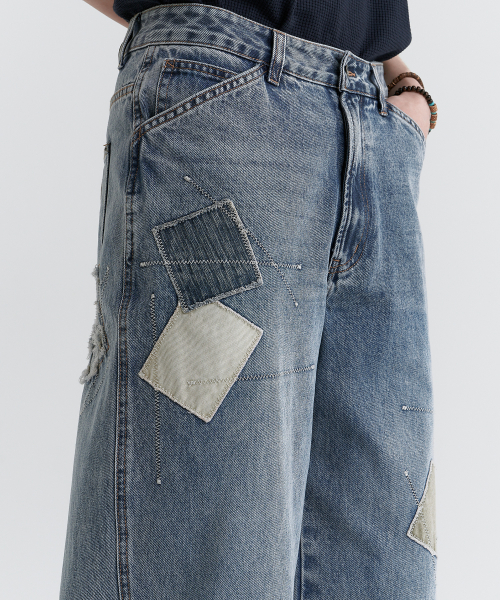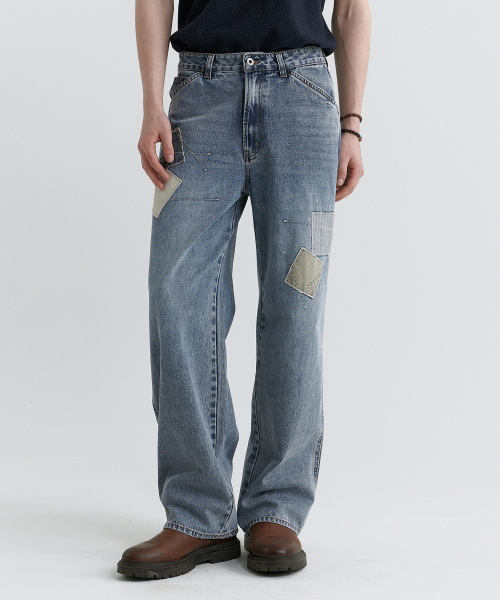 파번 7563 패치워크 와이드핏 라이트인디고 데님팬츠