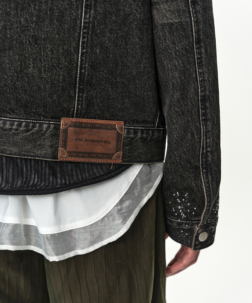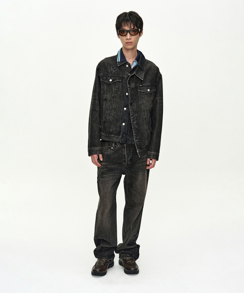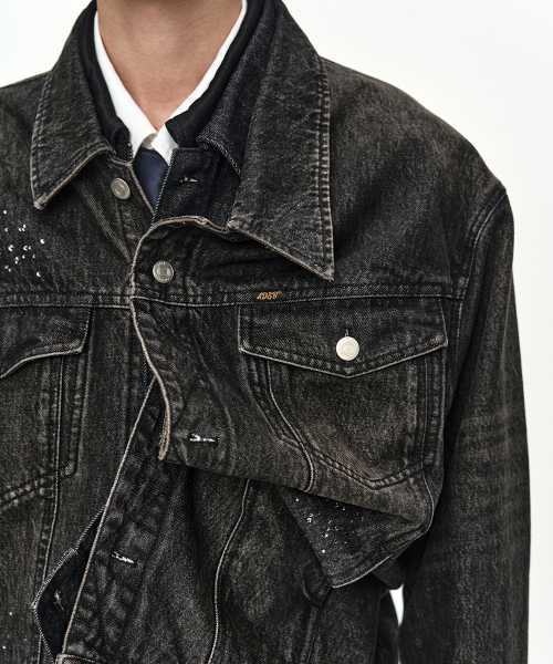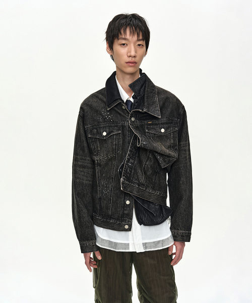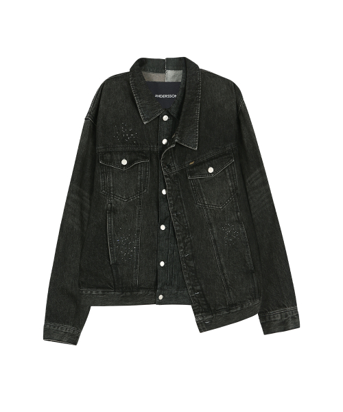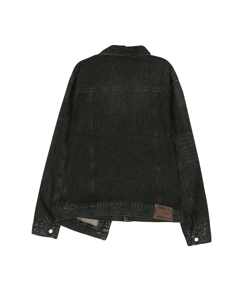 UNISEX ASYMMETRIC LAYERED BEADS DENIM JACKET awa762u(BLACK)