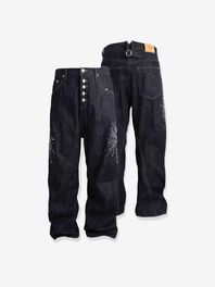 UNISEX ASYMMETRIC LAYERED HOT-FIX WIDE-LEG JEANS apa912u(BLACK)