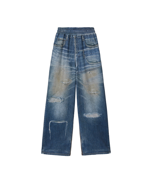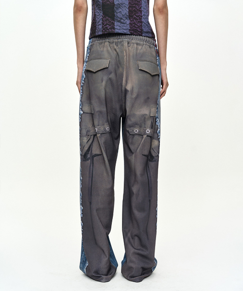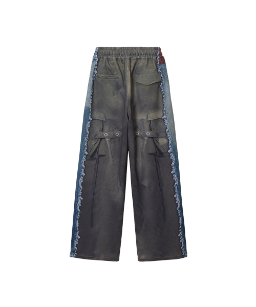 DENIM & CARGO TROMPE LOEIL MESH PANTS apa922u(MID BLUE/KHAKI)