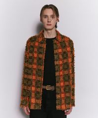 CUT OFF HAIRY CHECK SHIRT ORANGE