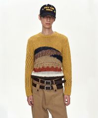 YELLOW HAND-CROCHETED CREW-NECK SWEATER atb1550m(YELLOW)
