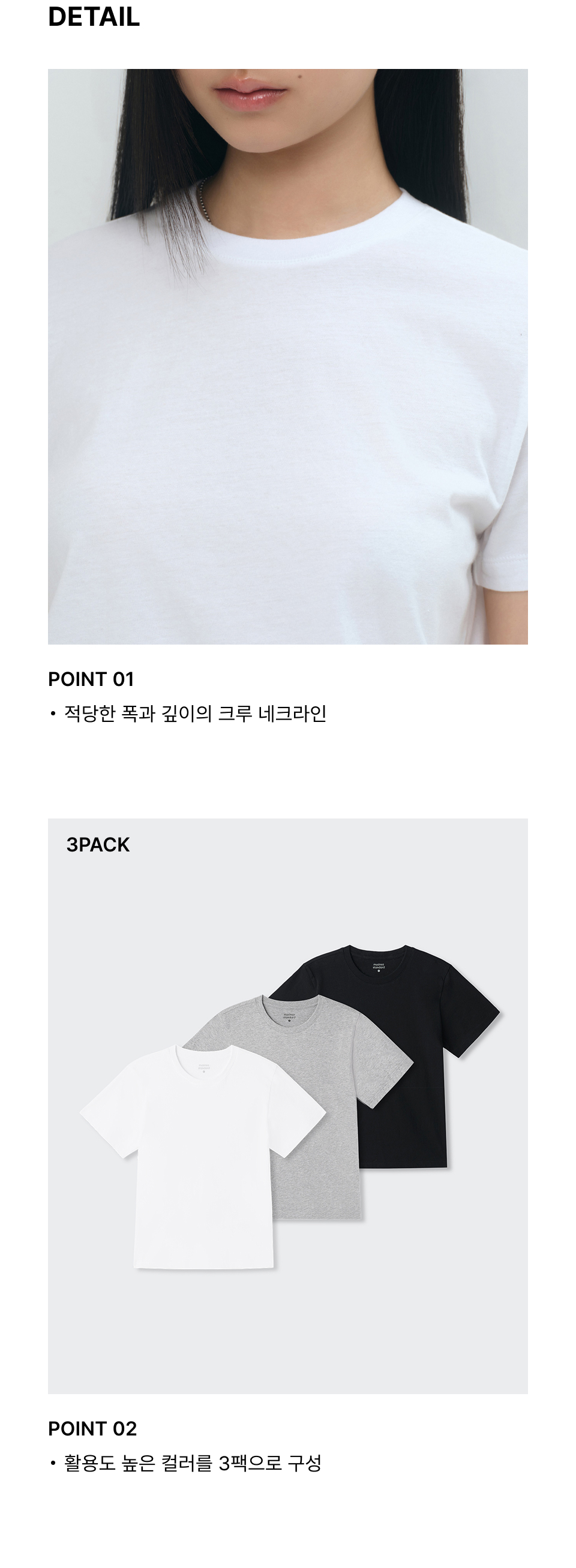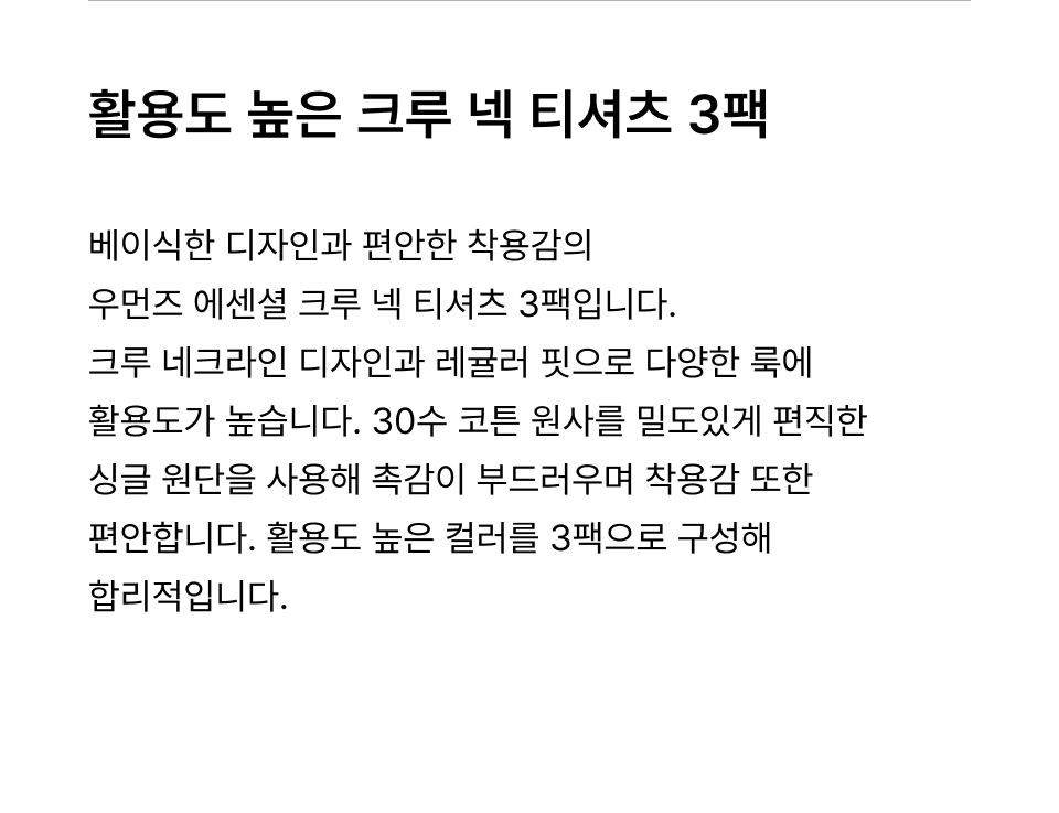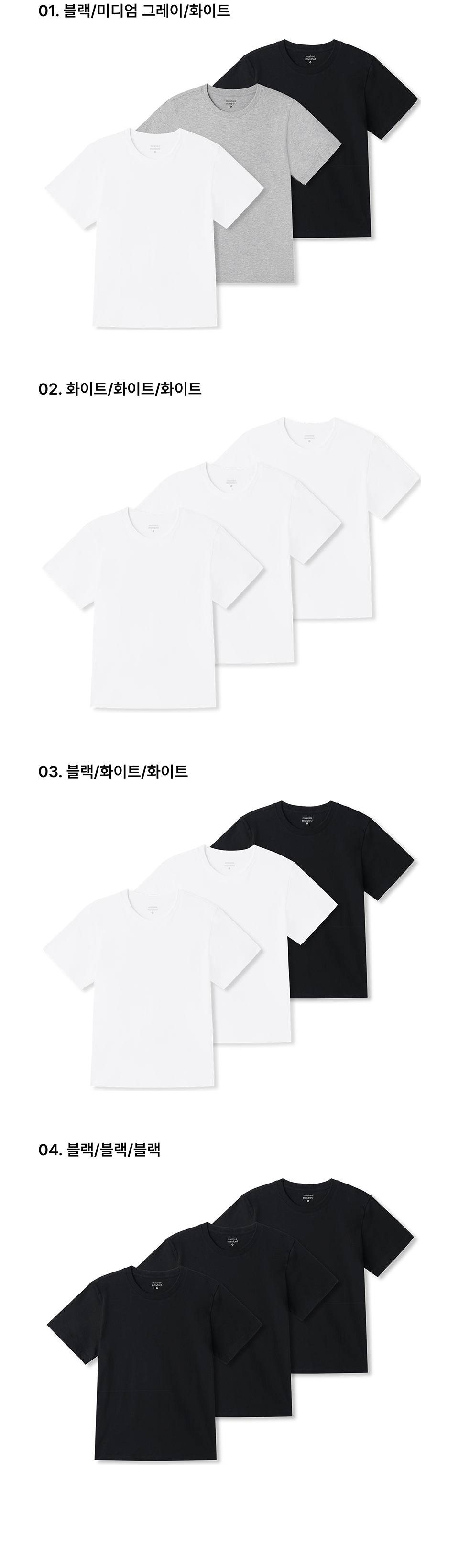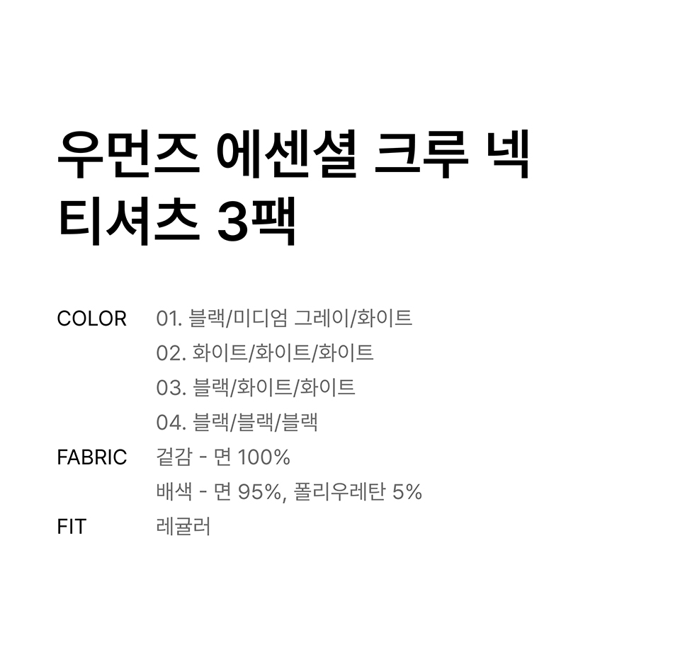 우먼즈 에센셜 크루 넥 티셔츠 3팩