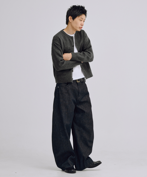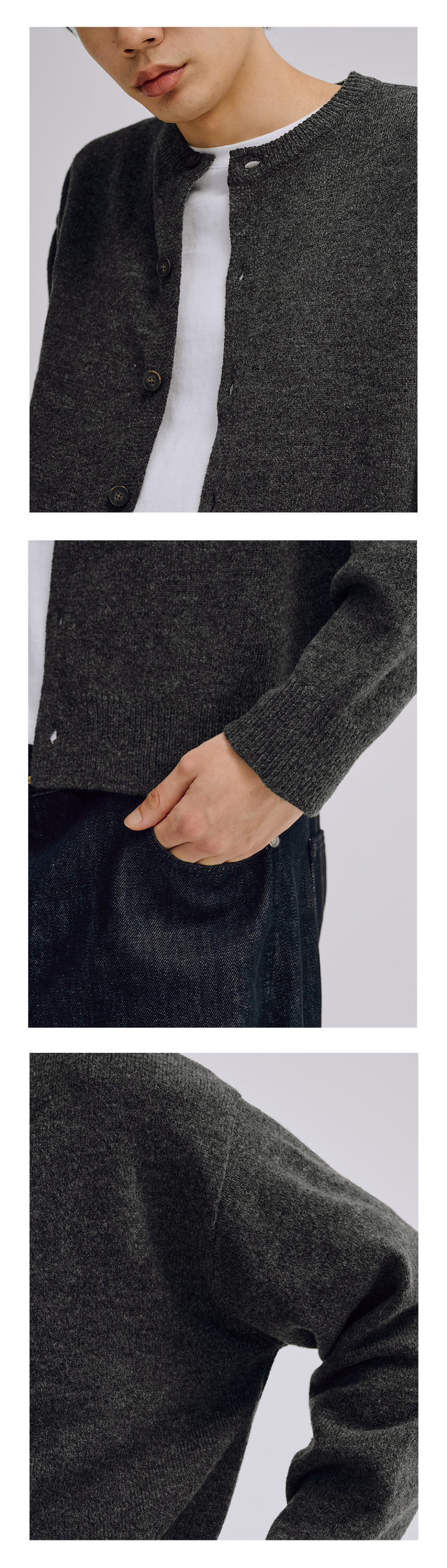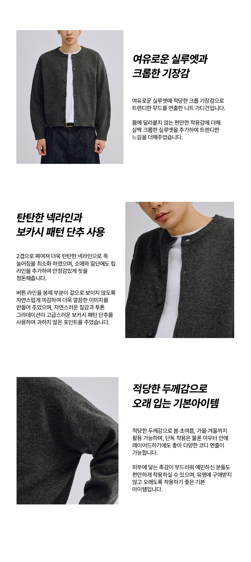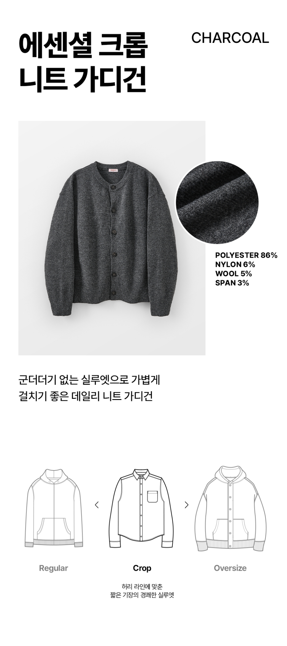 에센셜 크롭 니트 가디건 (차콜)