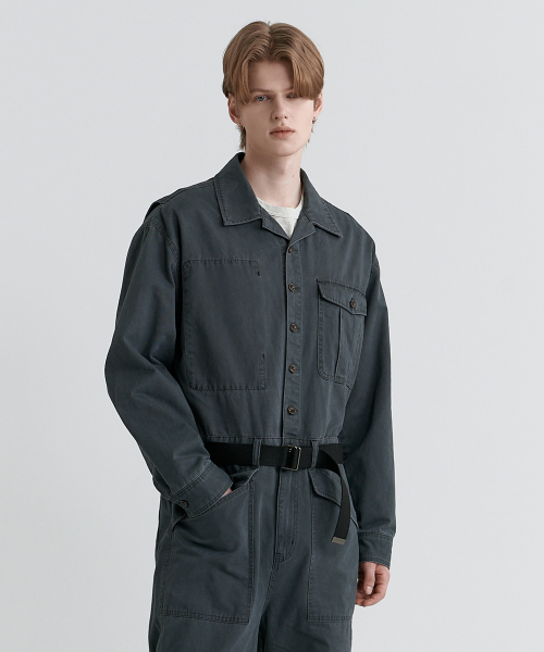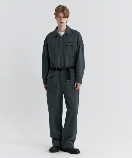 파번 5810 피그먼트 오버핏 그레이 점프수트