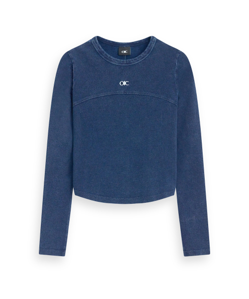 데님워싱 크롭 긴팔 티셔츠 [BLUE]