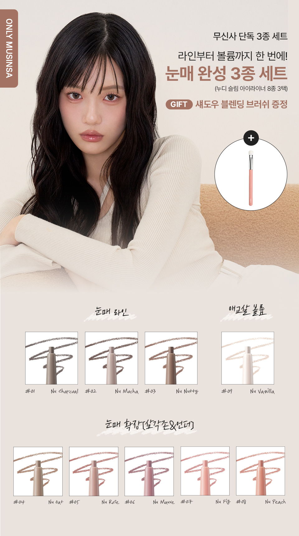 [3SET]누디 슬림 아이라이너(9colors)(+섀도우 블렌딩 브러쉬 증정)