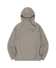 와플 커버 스티치 후드 티셔츠 - CHARCOAL