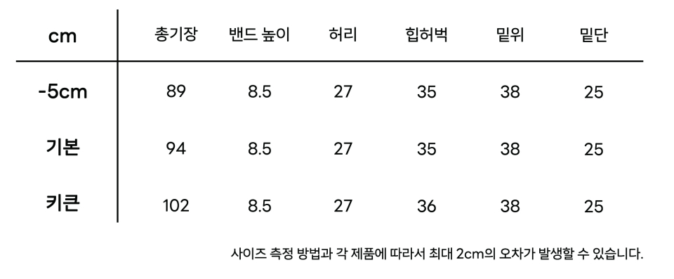 | 핏 | 스키니 | 슬림 | 레귤러 | 루즈 | 오버 사이즈 |