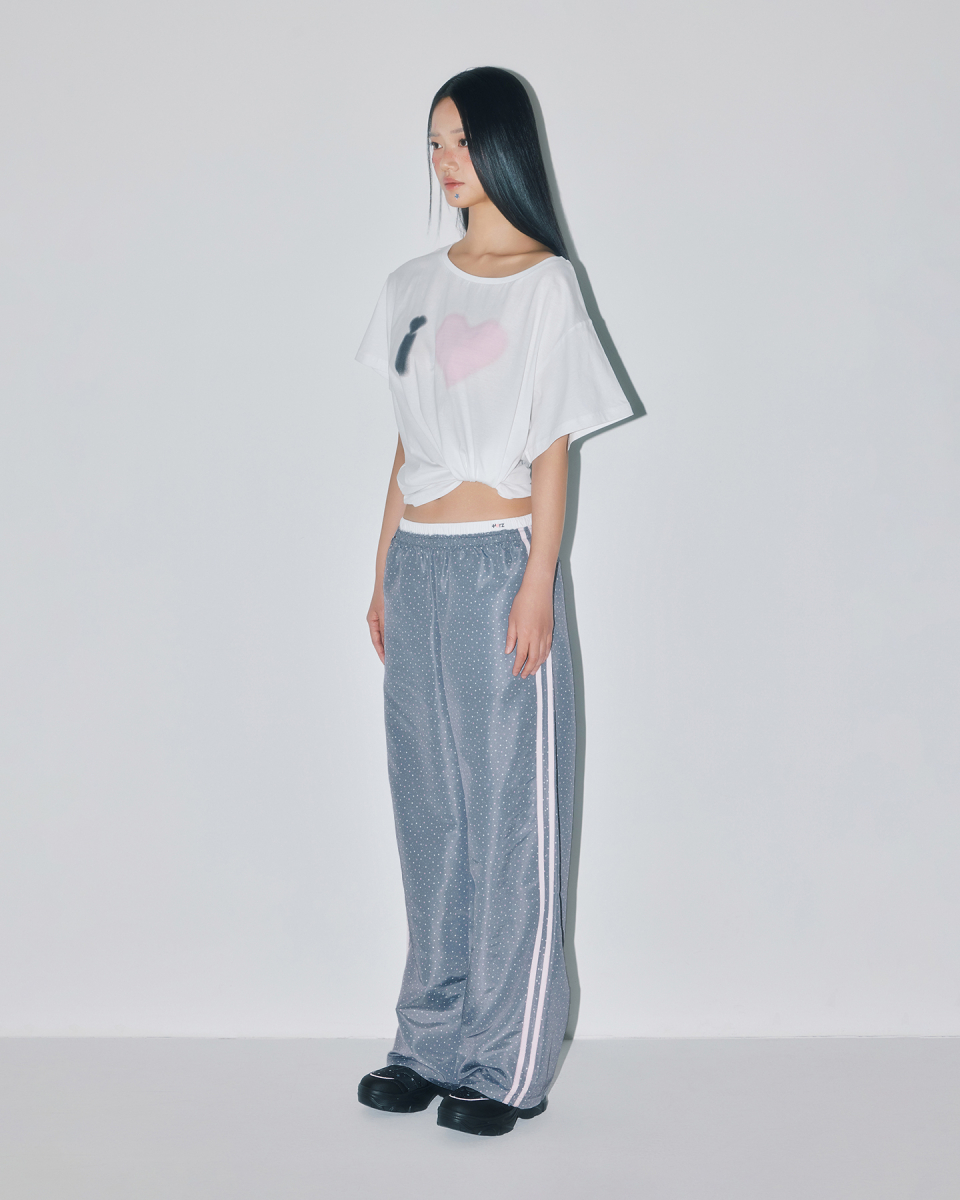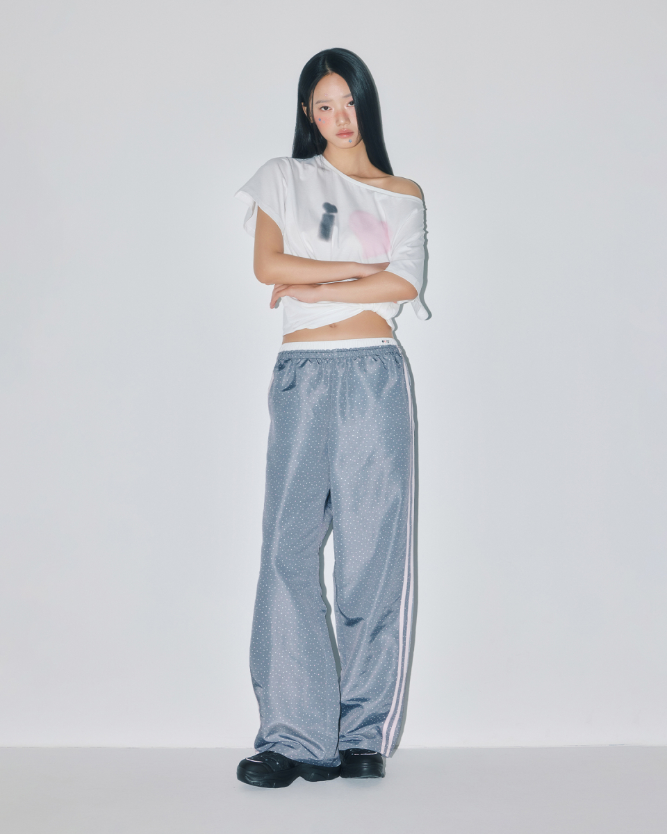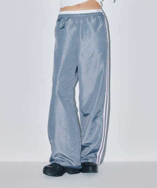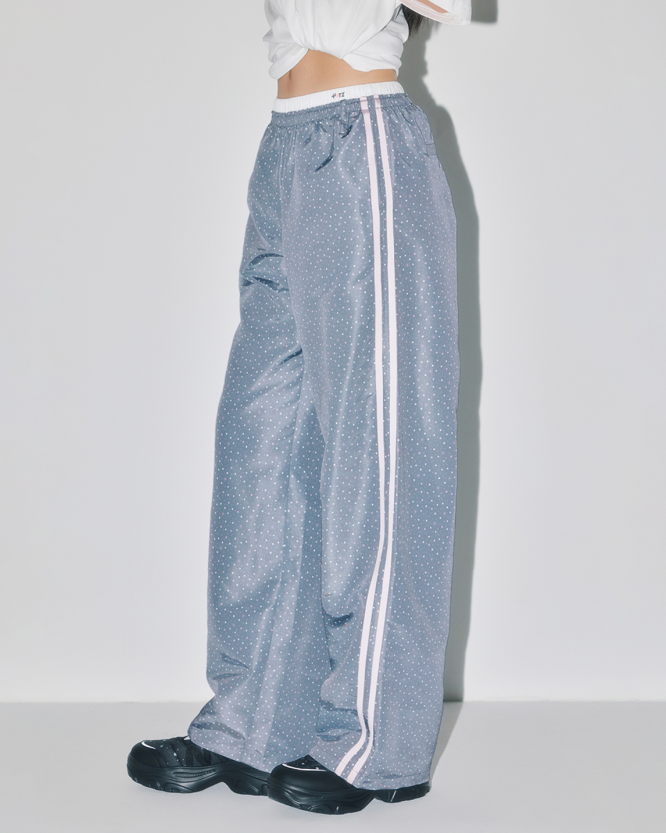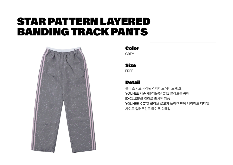 [YOUHEEXOTZ] STAR PATTERN LAYERED BANDING TRACK PANTS_GREY