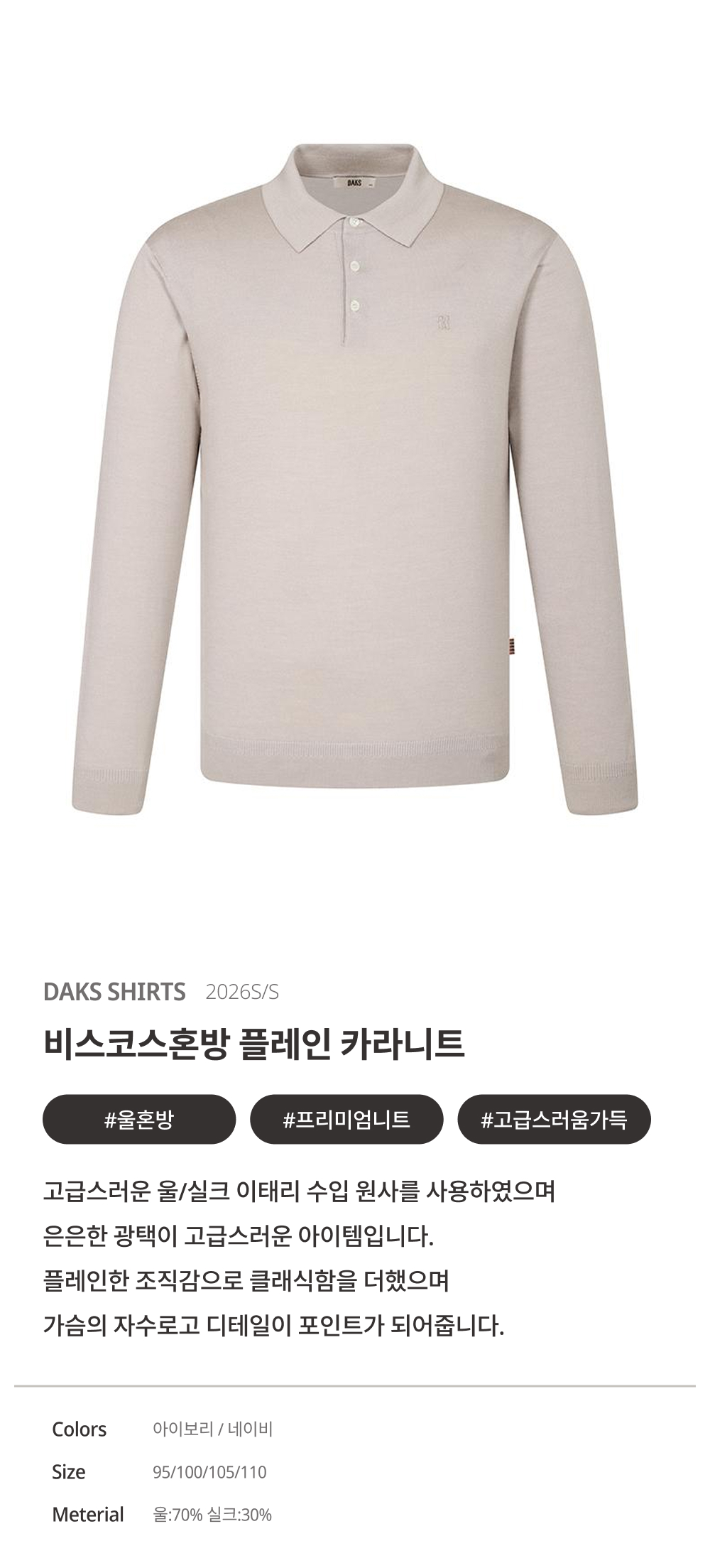 비스코스혼방 플레인 카라니트