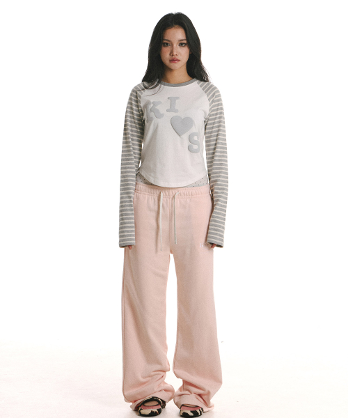멜로우 프린트 롱 슬리브 티 (그레이시 핑크)