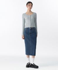 우먼즈 데님 미디 스커트 [미디엄 인디고]