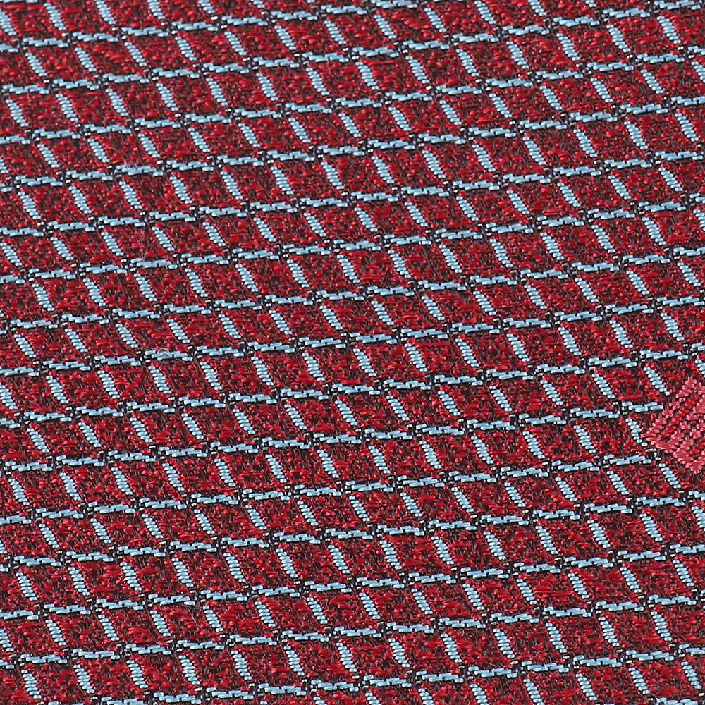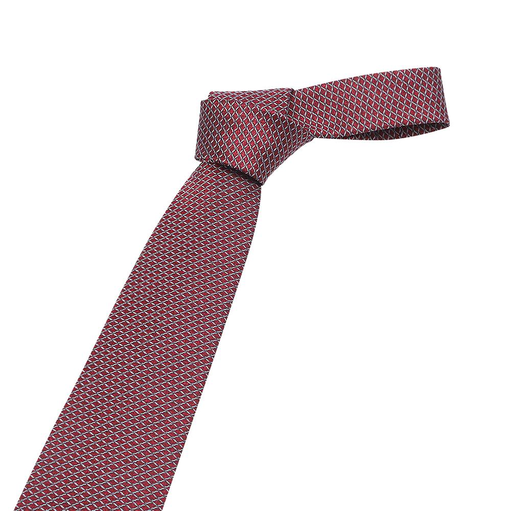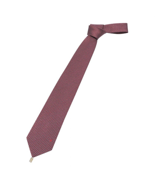 실크혼방 지오메트릭 체크 패턴 올오버 넥타이 레드