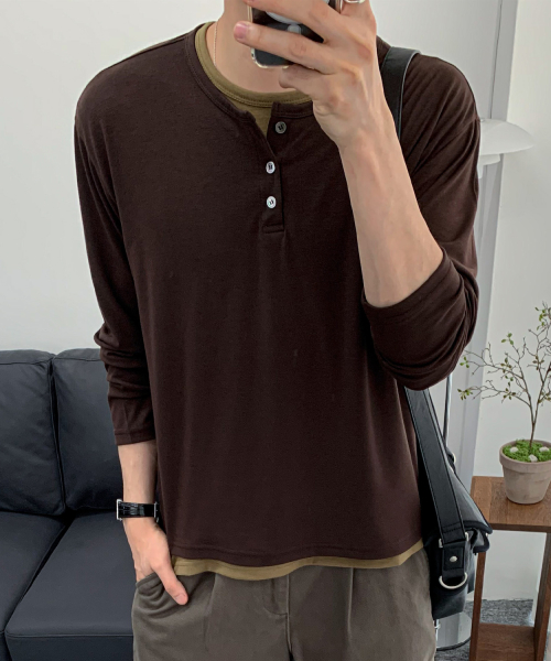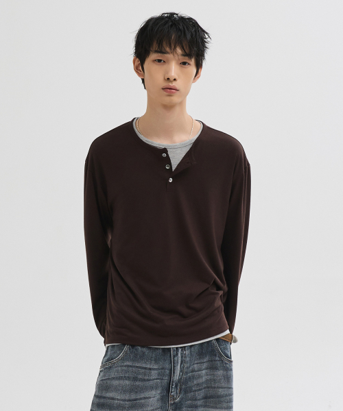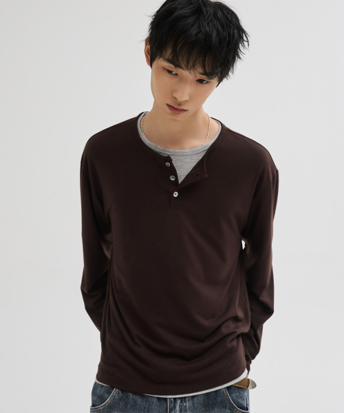 소프트 유넥 이너 티셔츠와 소프트 헨리넥 롱슬리브 티셔츠,