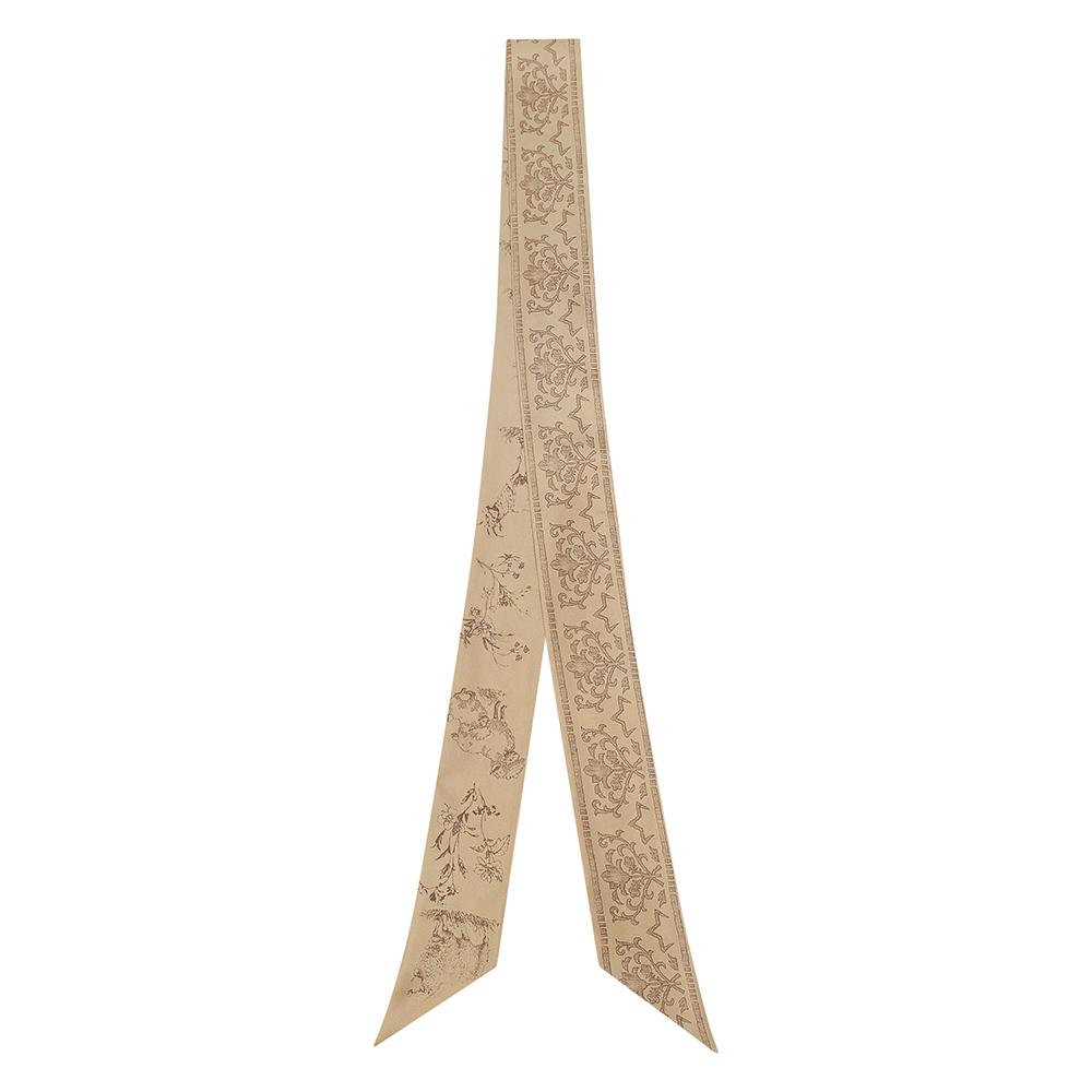 실크100 앤틱 프린팅 에스코트타이 스카프 베이지