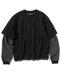 스트라이프 레이어드 긴팔티 세트 - 블랙/차콜