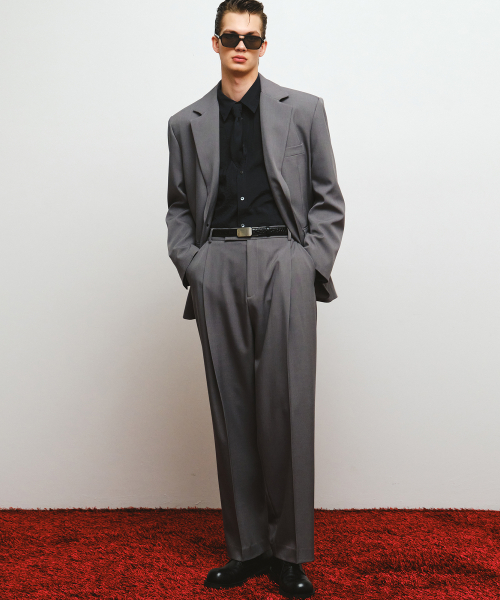 투 턱 버튼 와이드 슬랙스 (그레이)