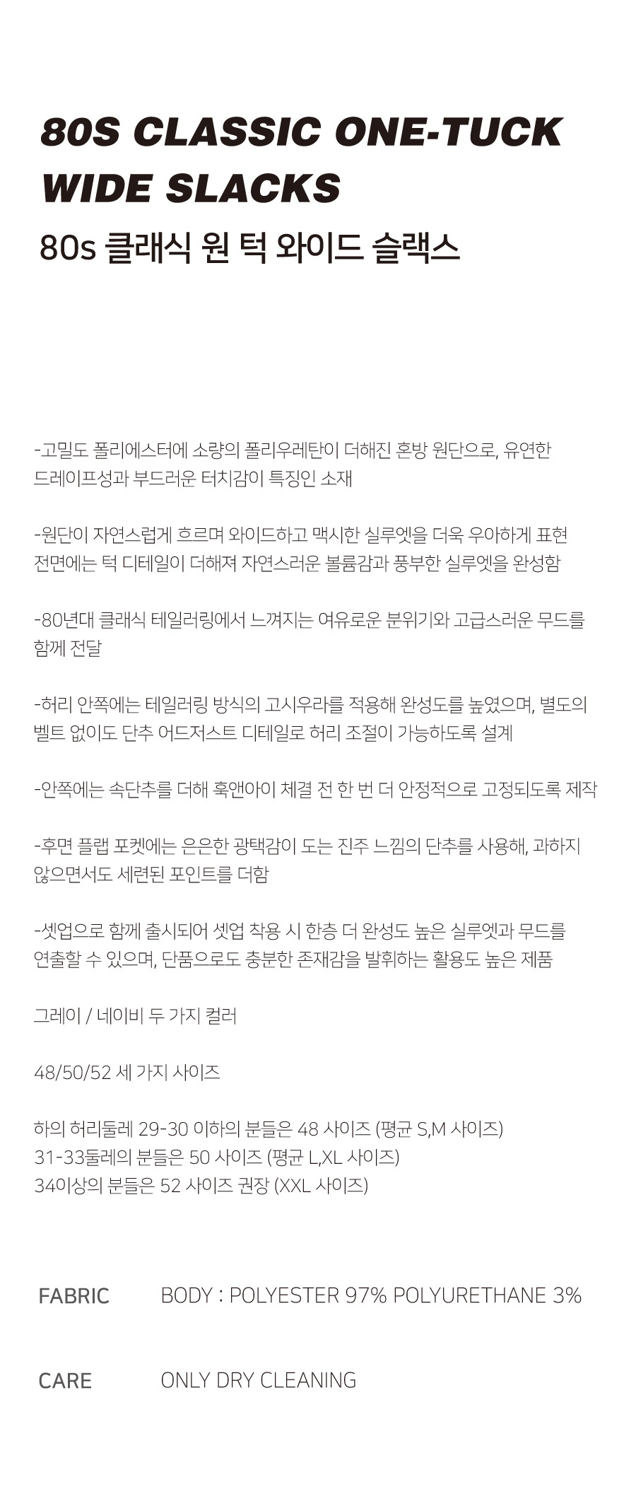 80s 클래식 원 턱 와이드 슬랙스 (그레이)