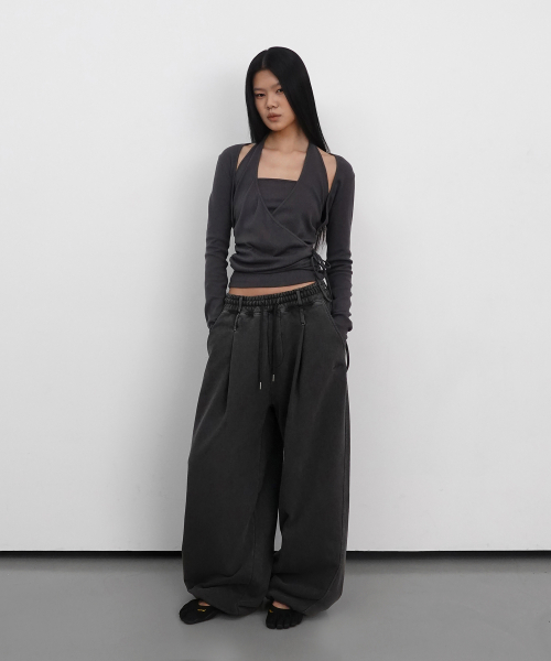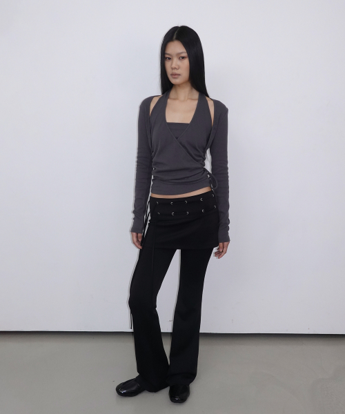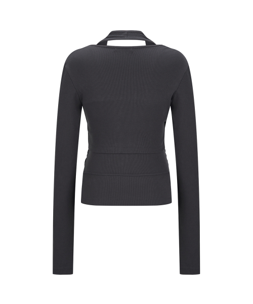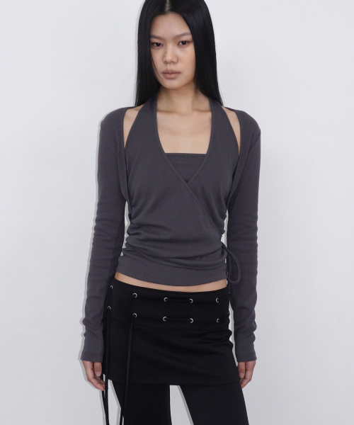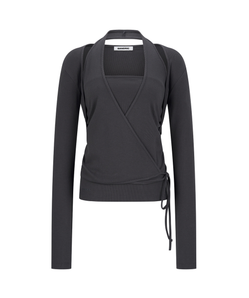 Layered Halter Wrap Long Sleeve_Charcoal