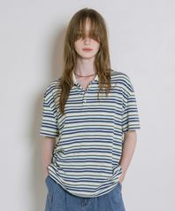 A3522 멀티 스트라이프 피케 티셔츠_Blue
