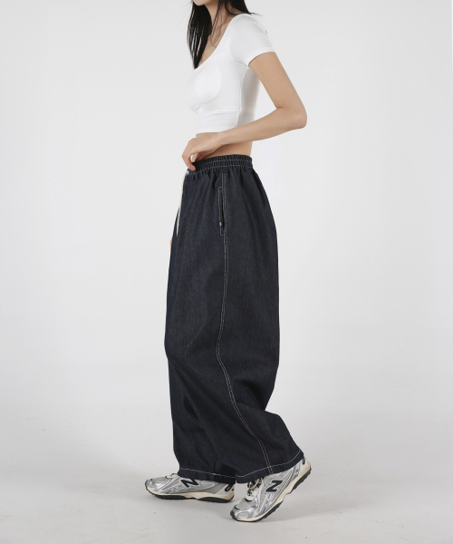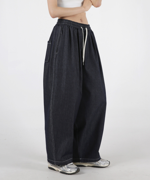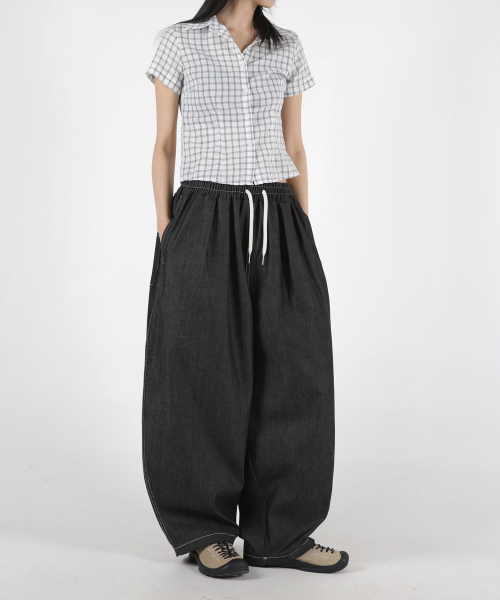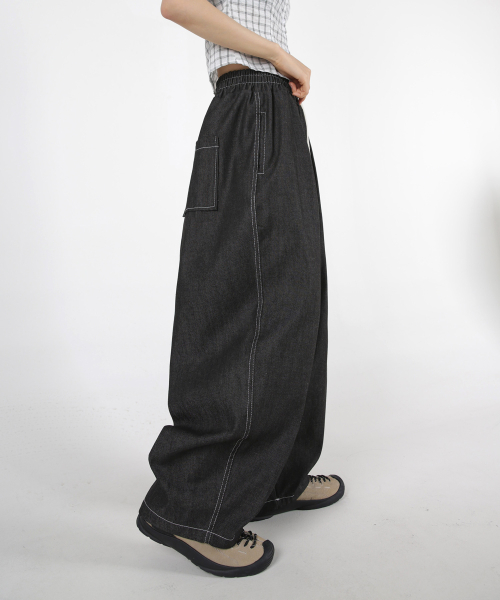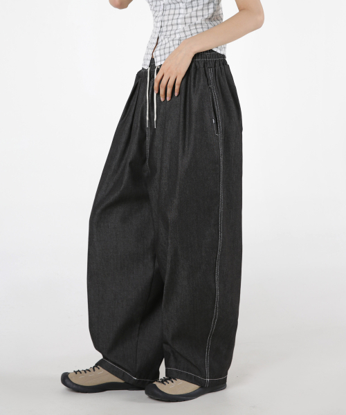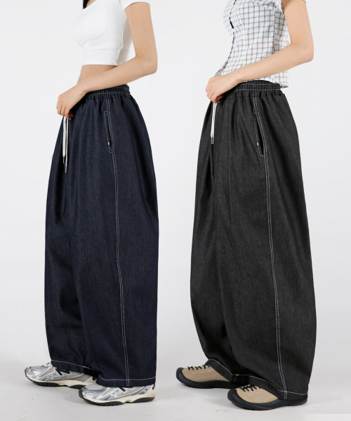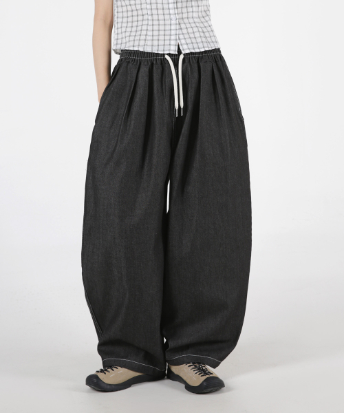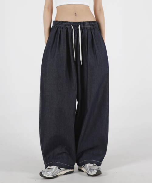 여자 논페이드 스티치 투턱 벌룬데님팬츠 2COLOR
