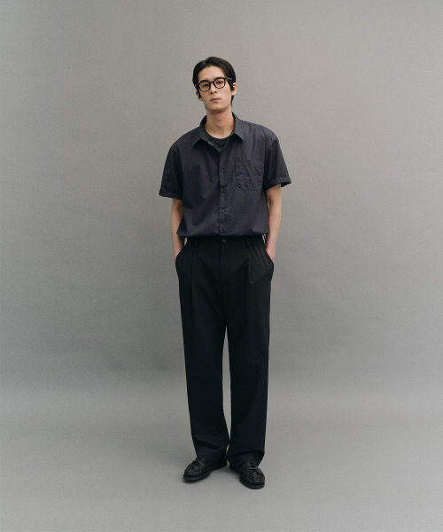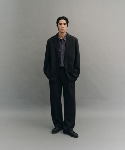 여유롭지만 퍼지는 느낌 없이 단정하게 뚝 떨어지는 핏을 구현했습니다