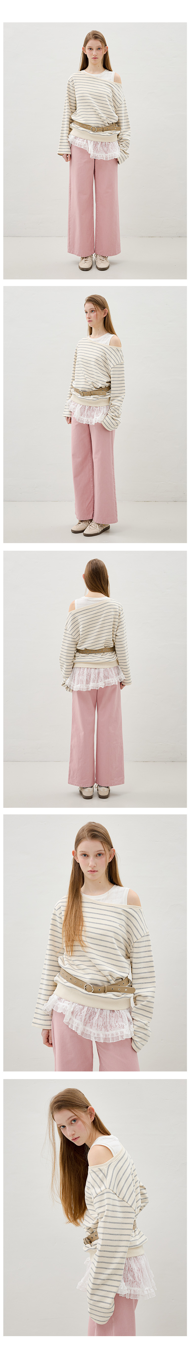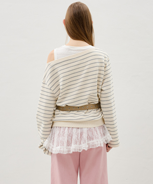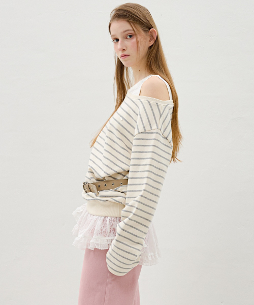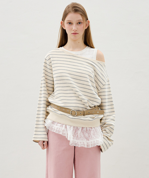 레이스 카라 스트라이프 티셔츠 OE6XE8230