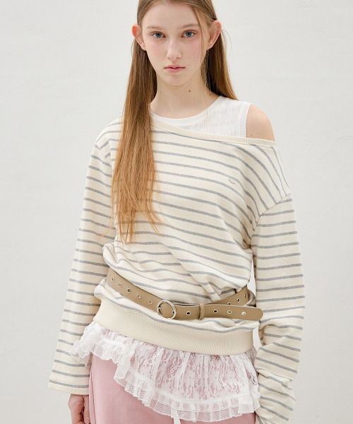 스트라이프 보트넥 티셔츠 OE6SE2060