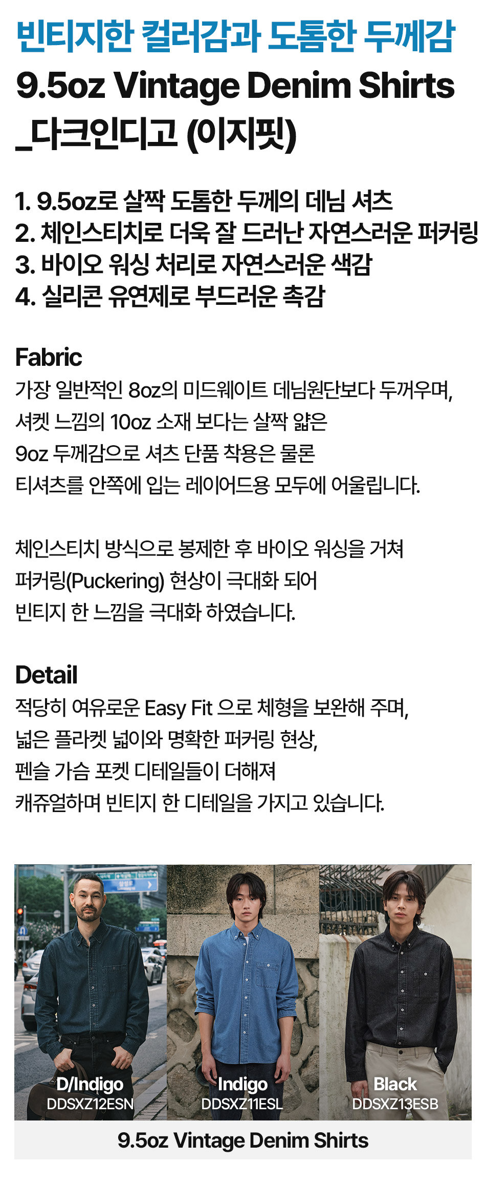 DIEMS 9.5oz Vintage Denim Shirts 다크 인디고 (이지핏)_DDSXZ12ESN