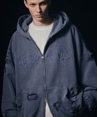 Destroyed N4ND Wild Logo Pigment Hood Zip up - Blue