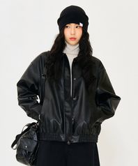 여성 비건 레더 블루종 점퍼-블랙