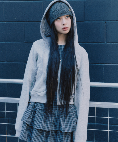[서지수PICK] 체크배색 후드집업_MIWJMG426C