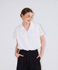 구조적인 네크라인 디테일을 더한 블라우스입니다.