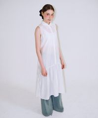 네크라인은 단정함과 비정형적인 균형을 동시에 담아,