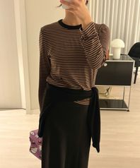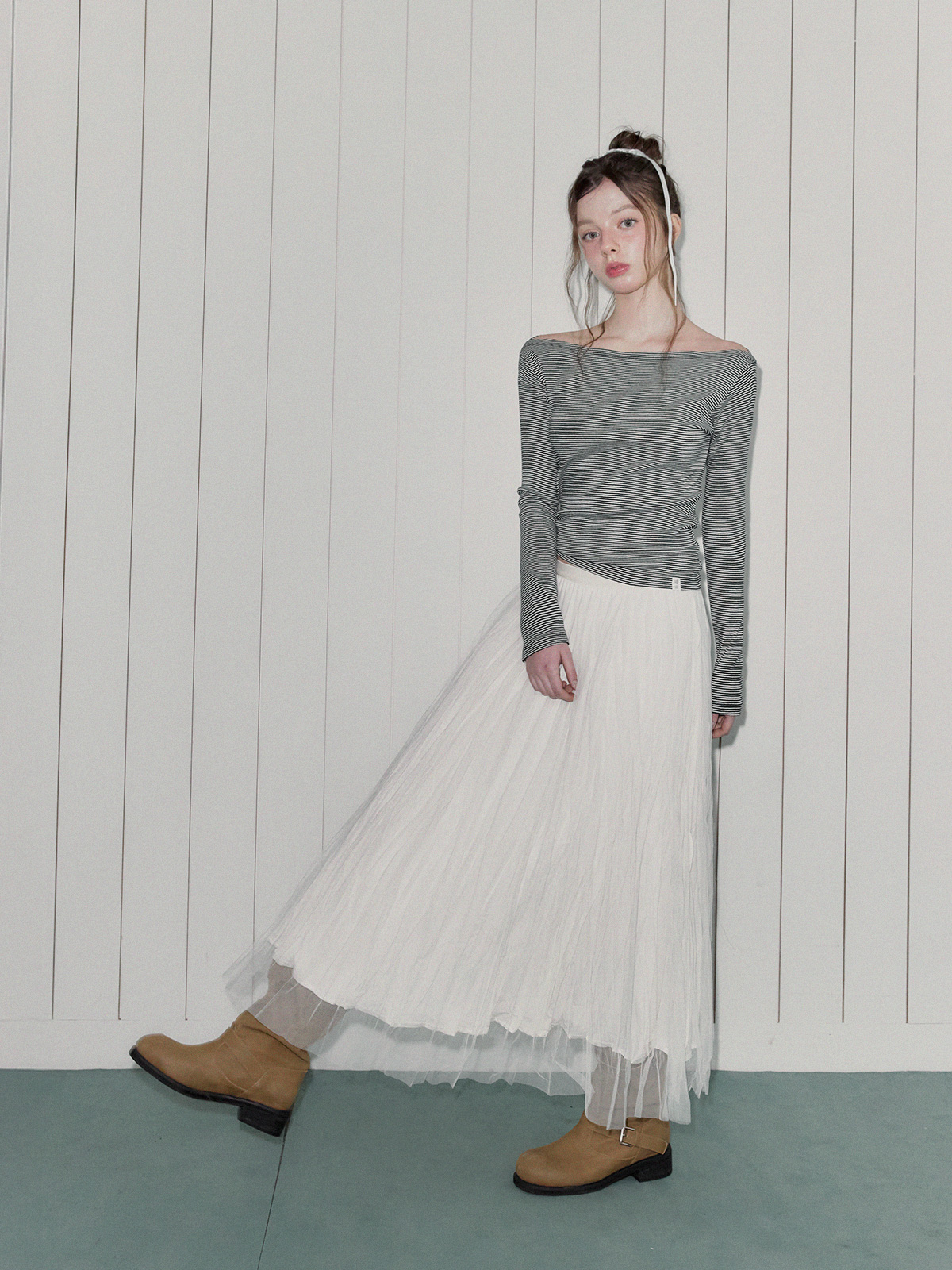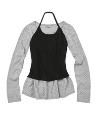 도트 롱슬리브 홀터넥 나시 레이어드 탑 세트_그레이 블랙