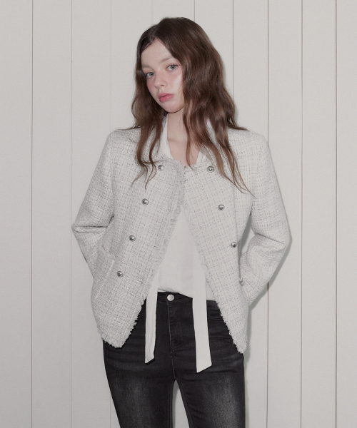 헨디 트위드 더블 버튼 긴팔 자켓