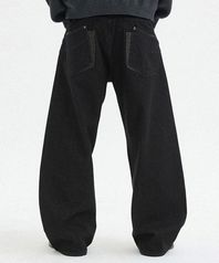 레더포켓 커브드 데님 팬츠[논페이드블랙]