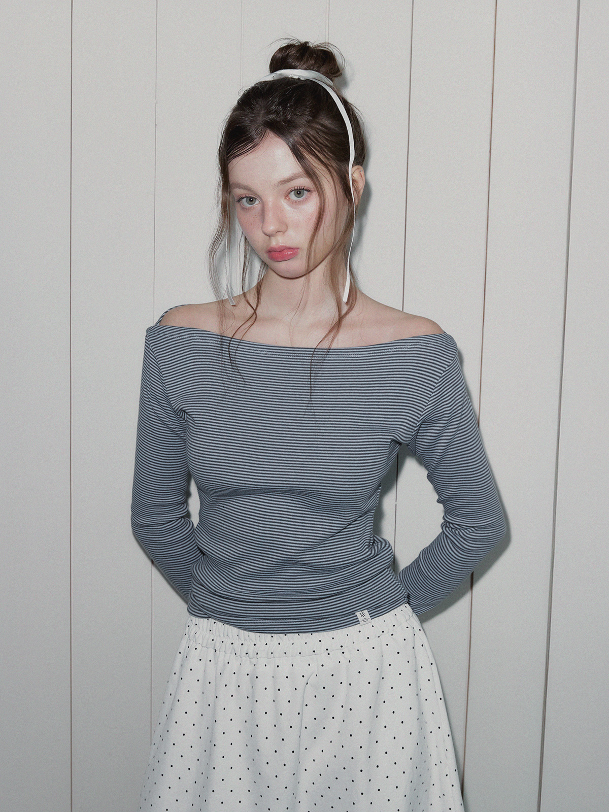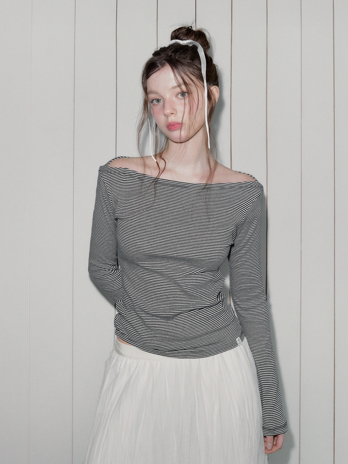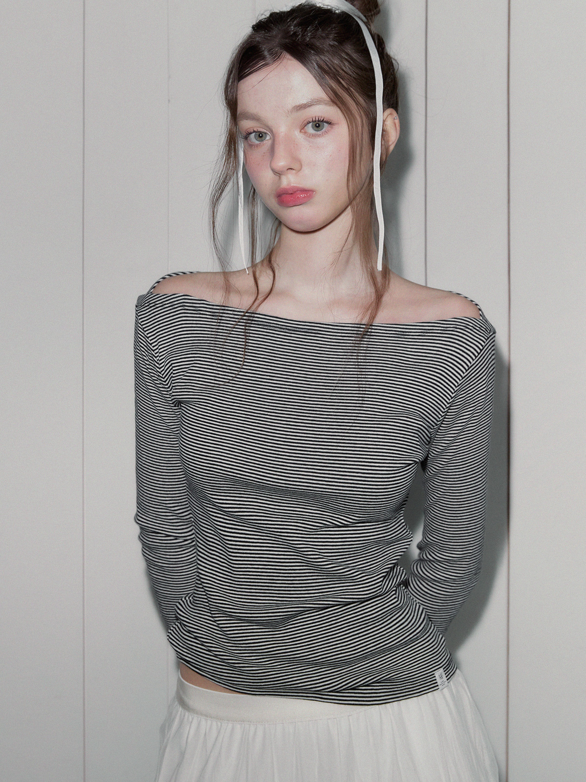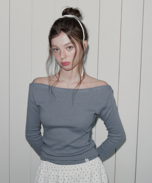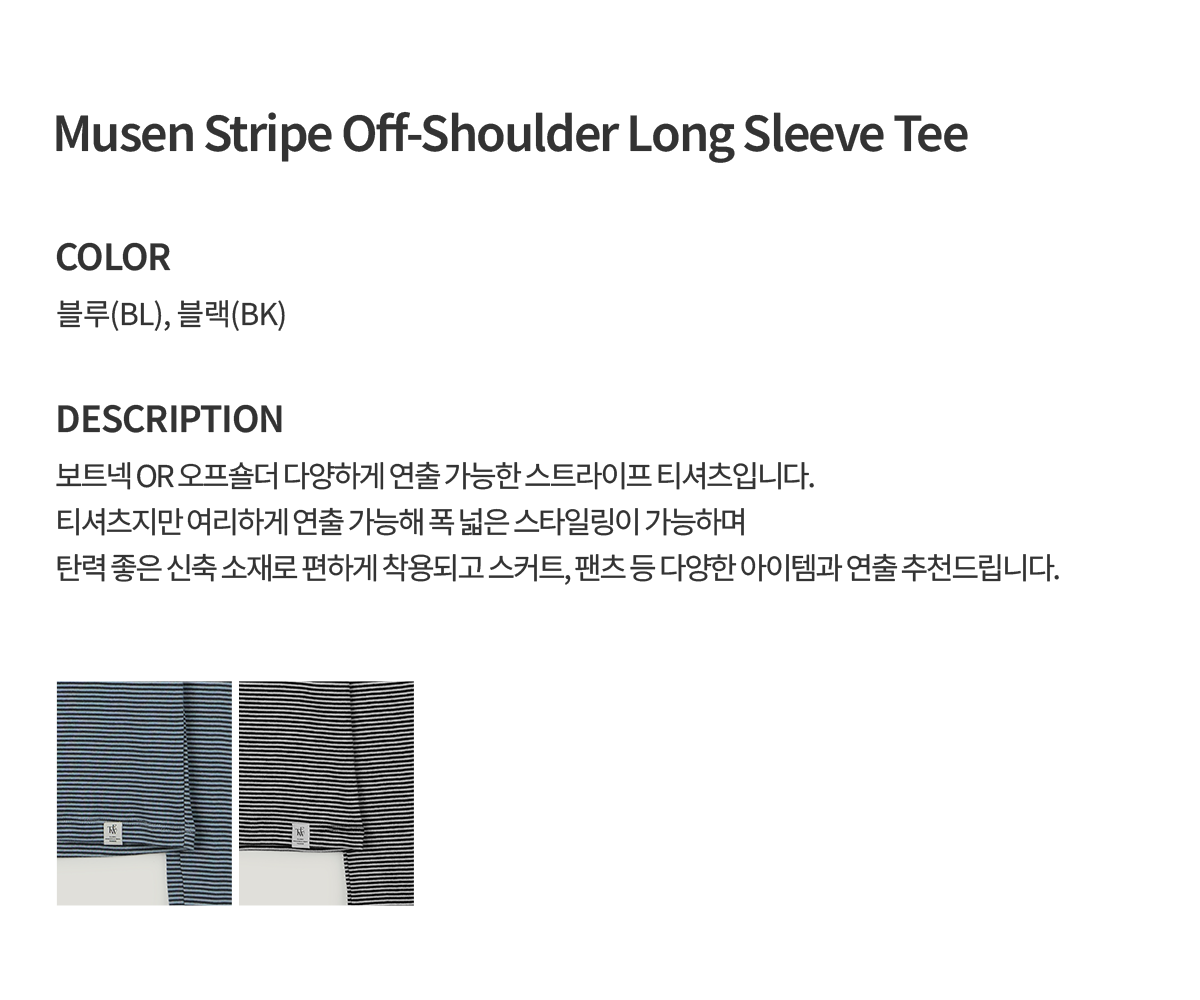 뮤즌 스트라이프 오프숄더 긴팔 티셔츠
