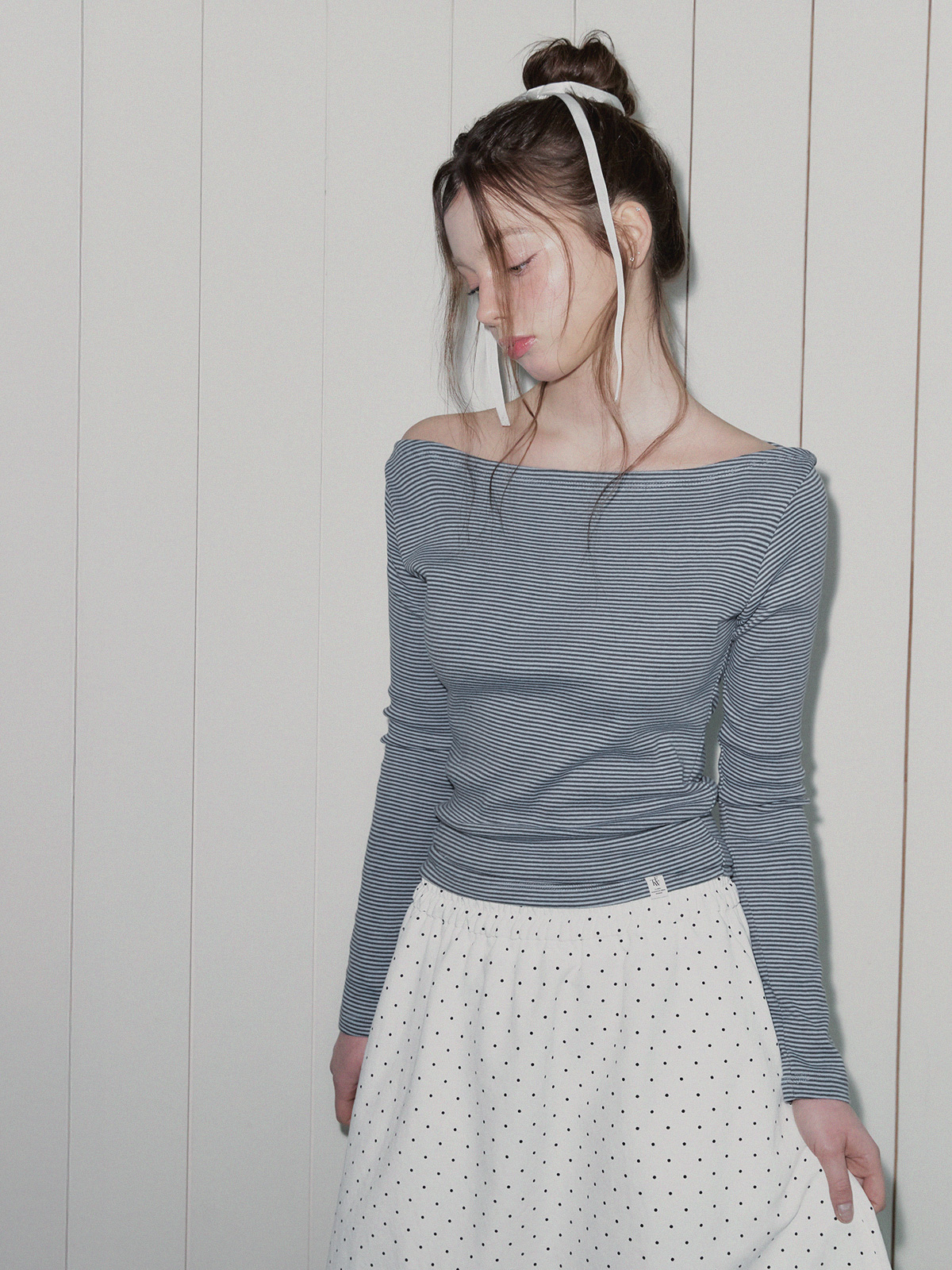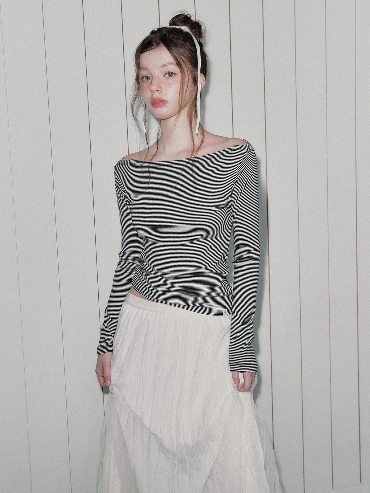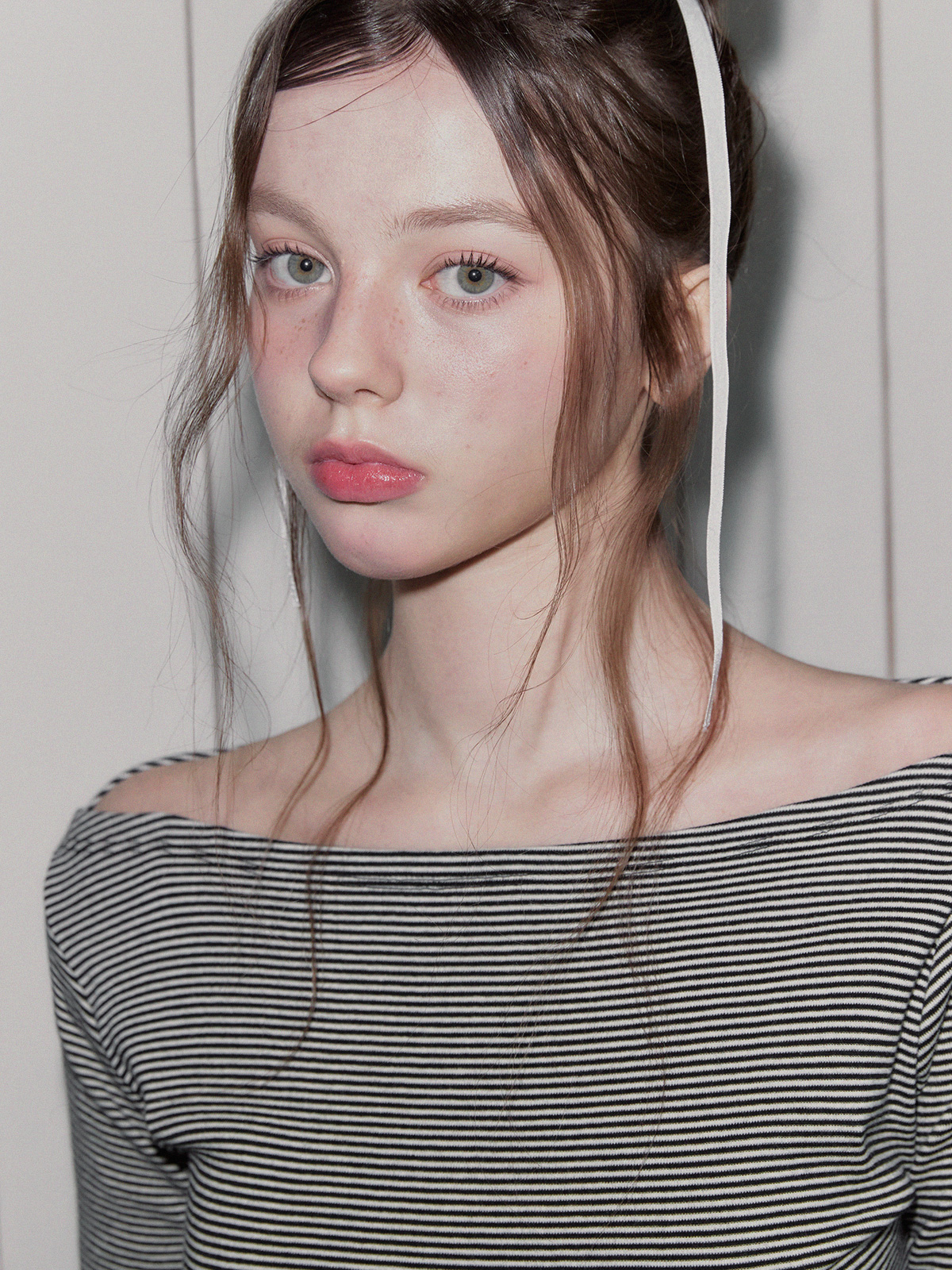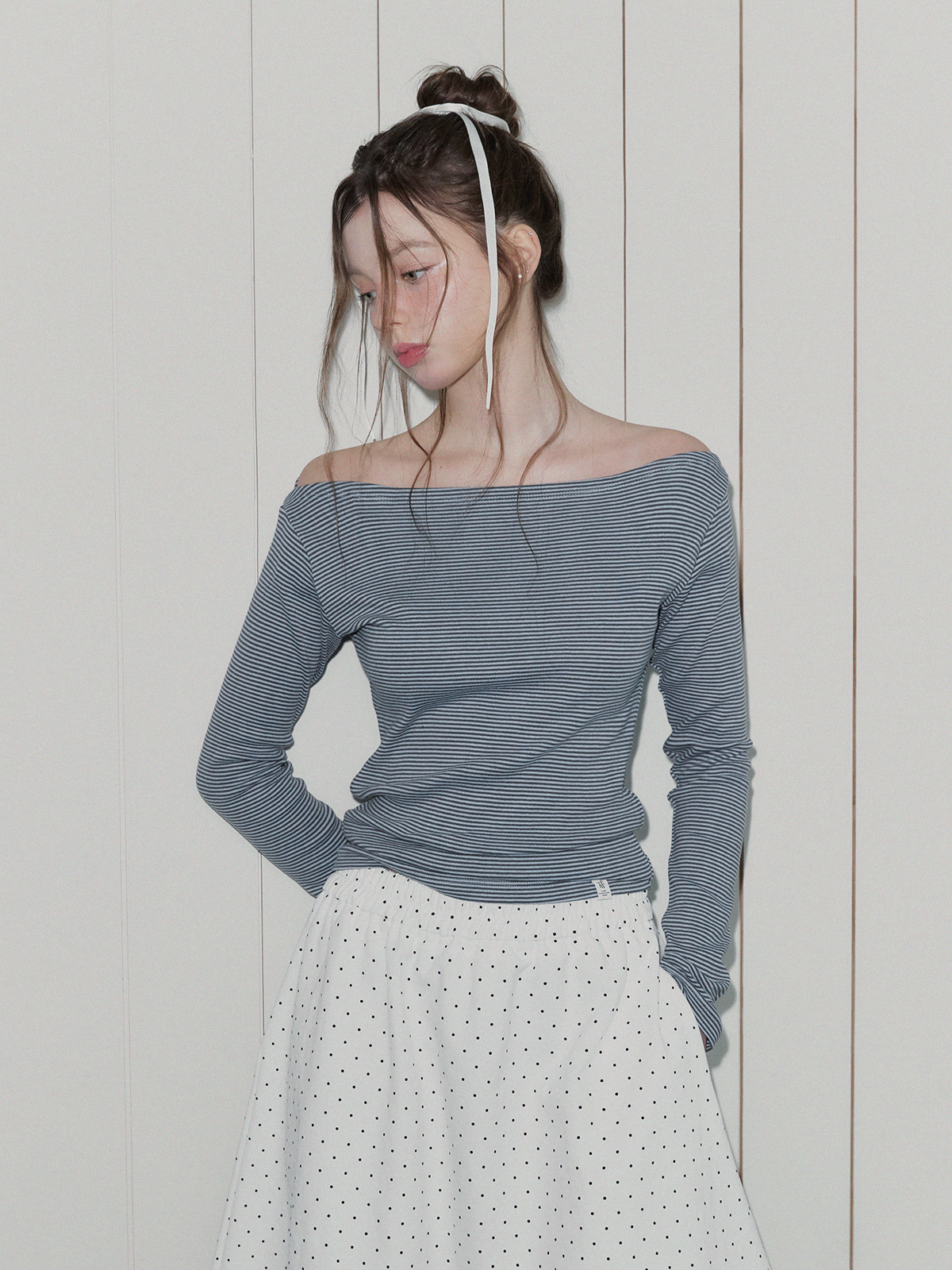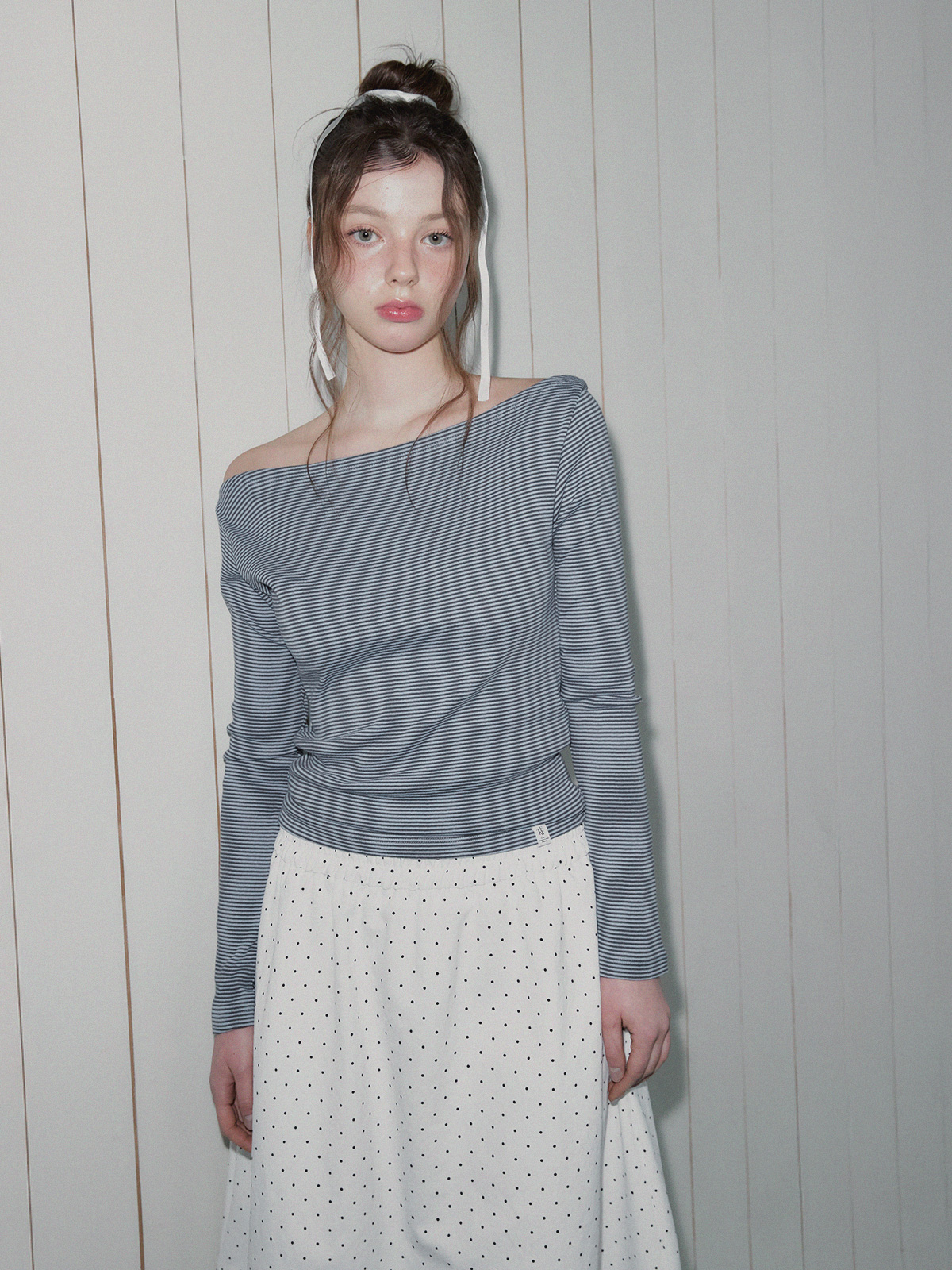 뮤즌 스트라이프 오프숄더 긴팔 티셔츠