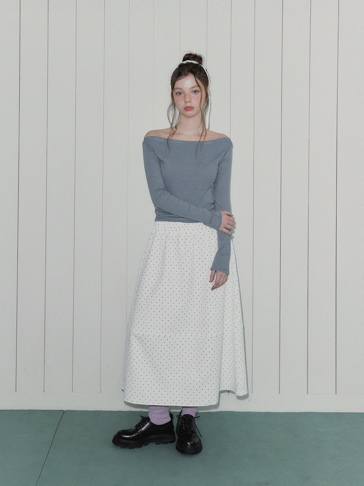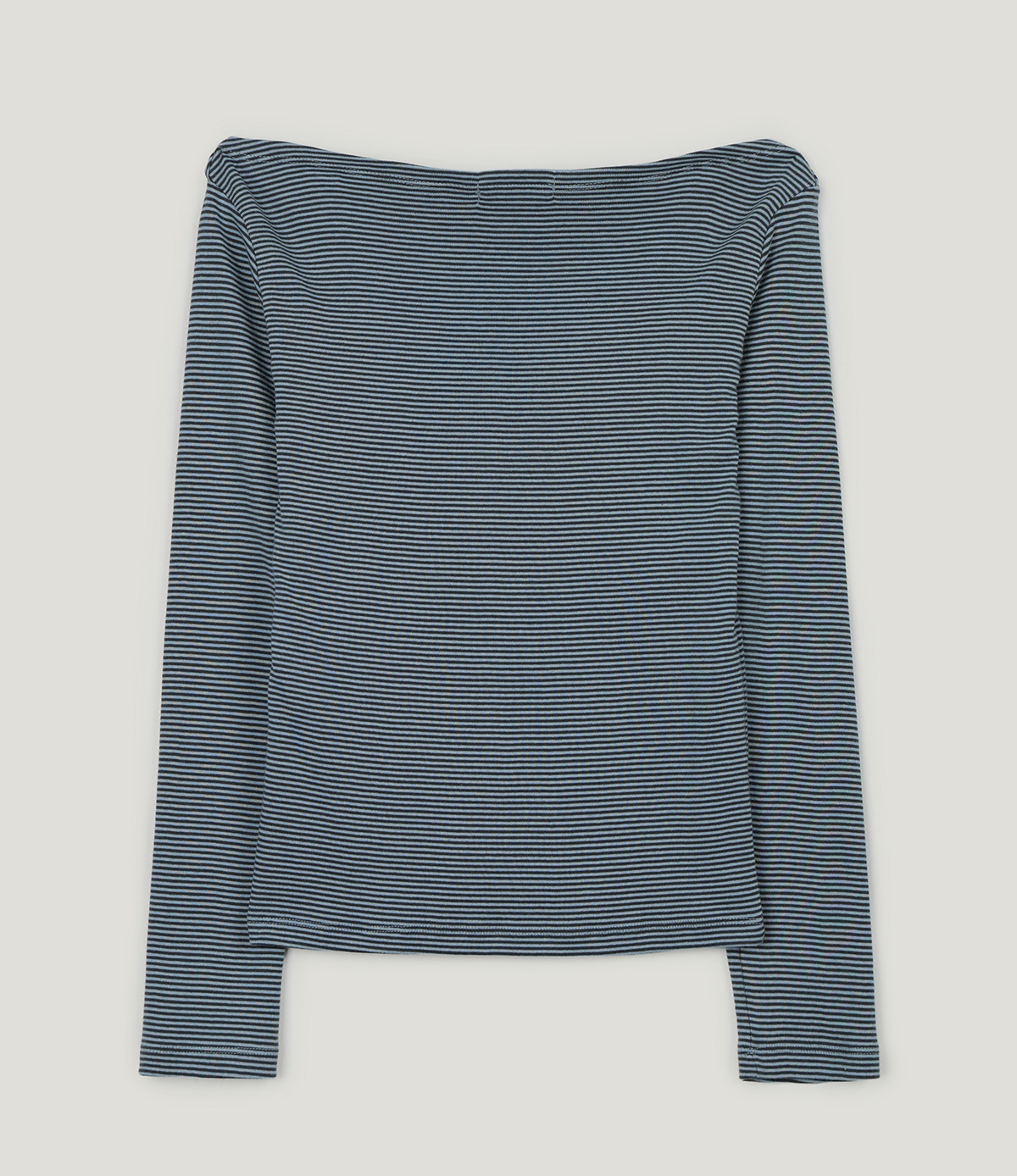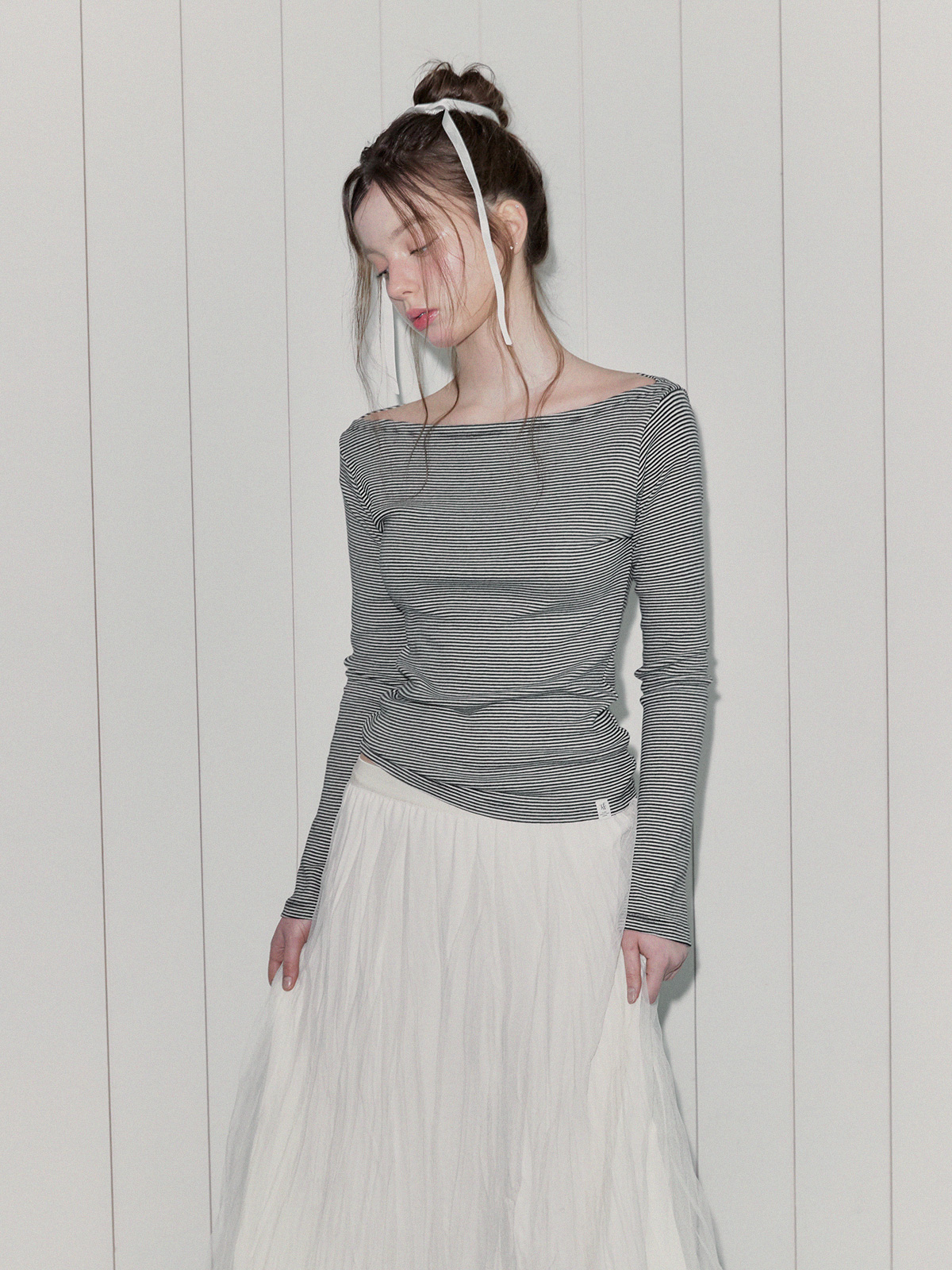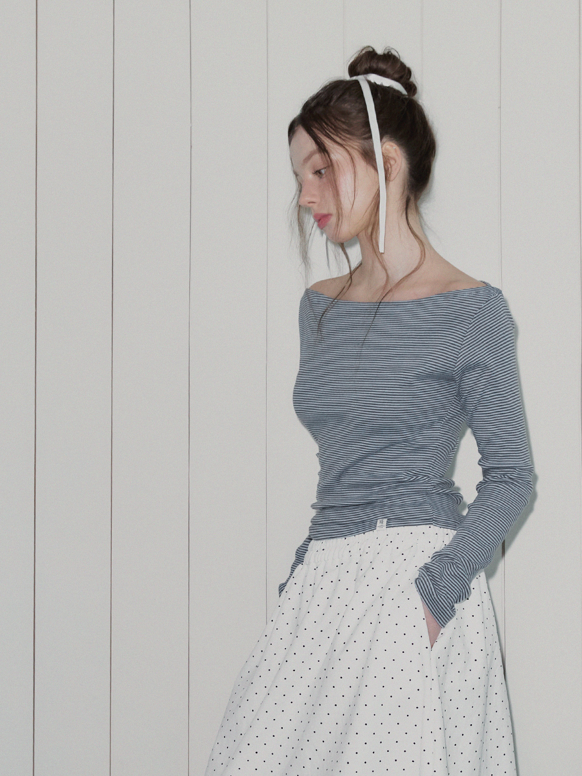 뮤즌 스트라이프 오프숄더 긴팔 티셔츠