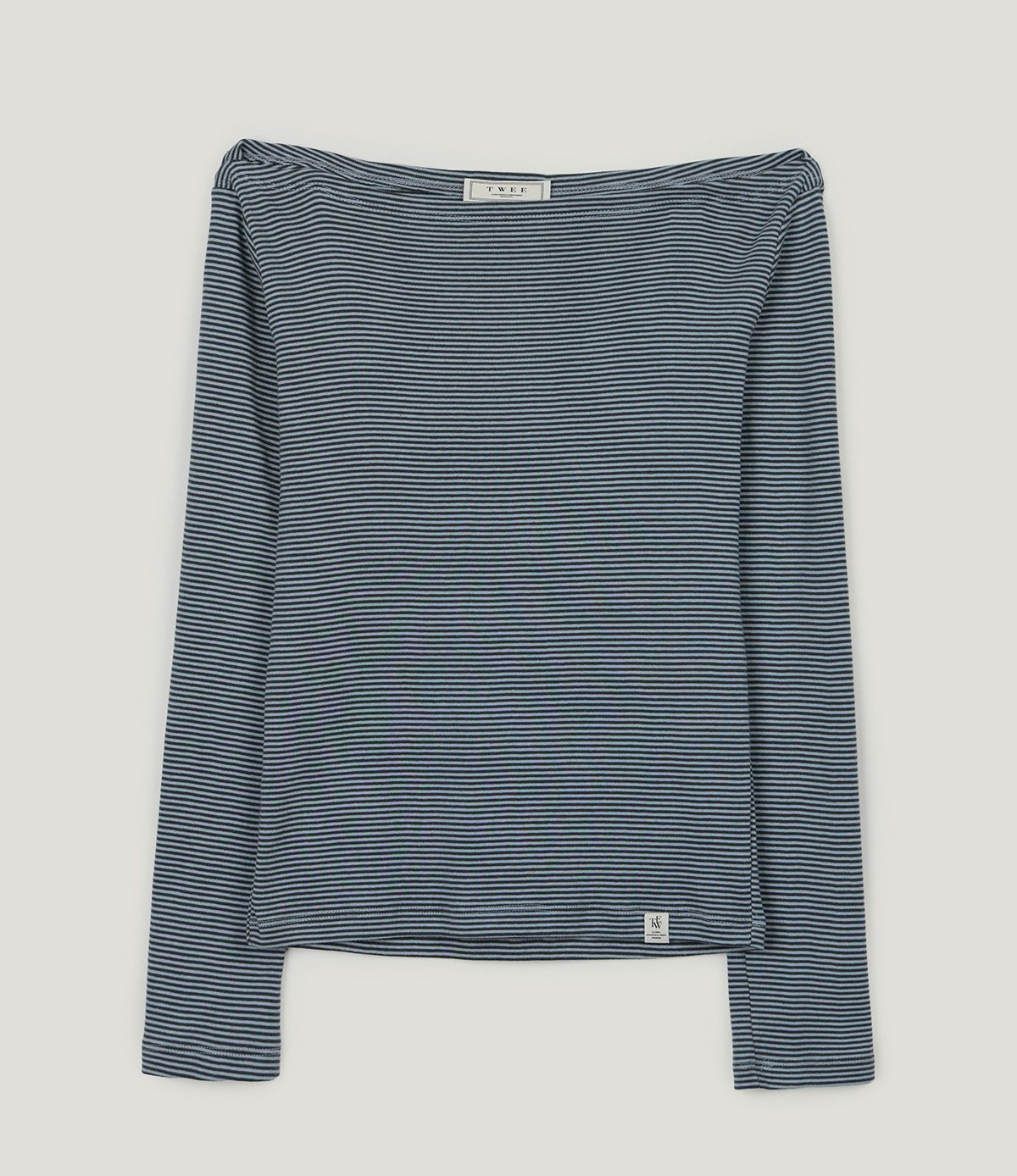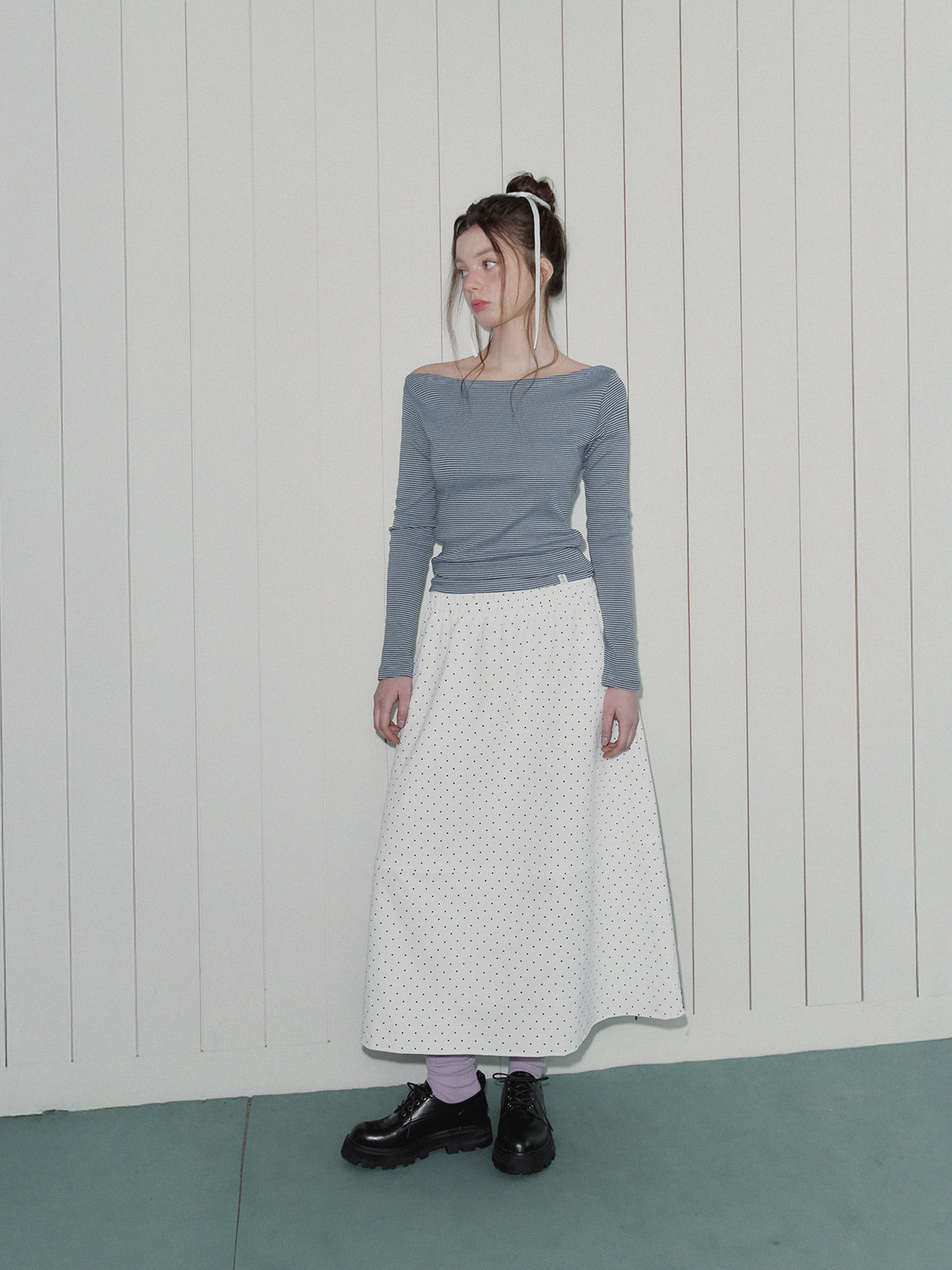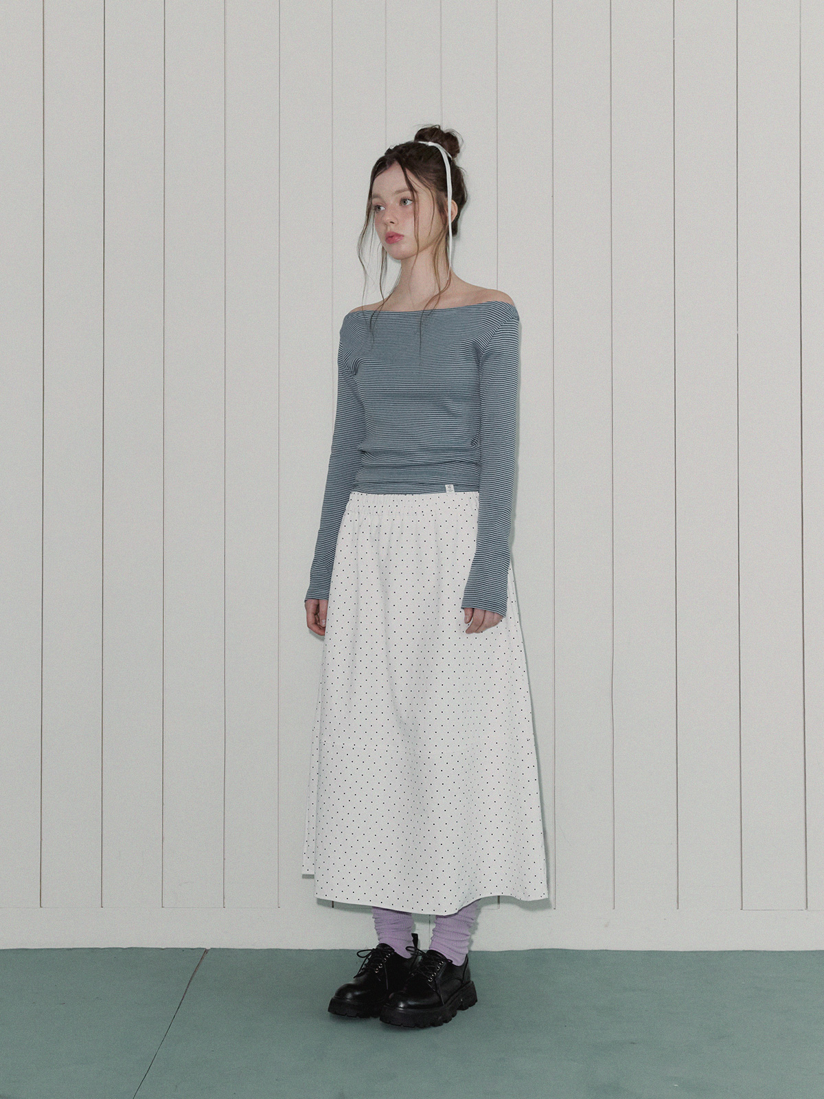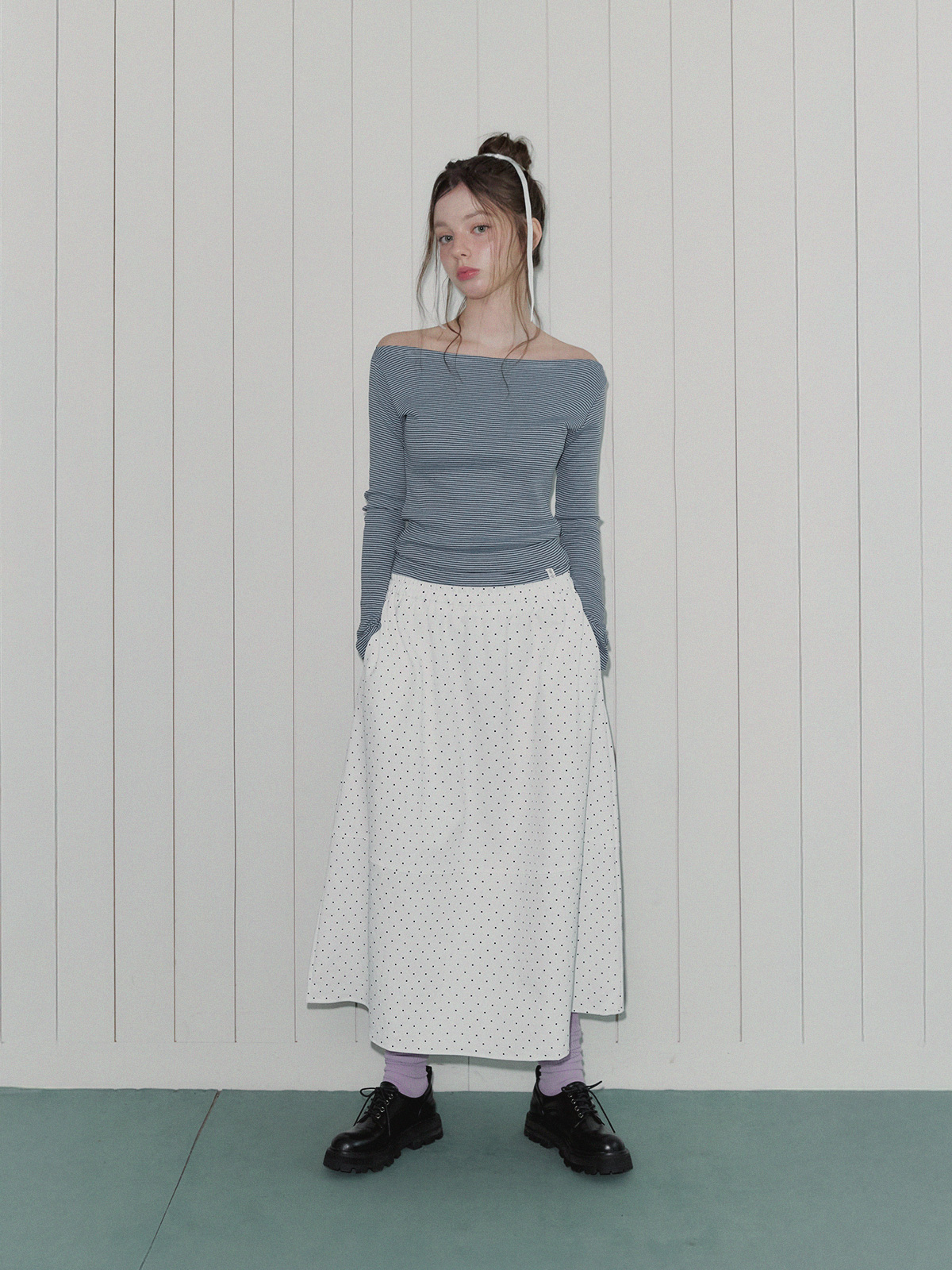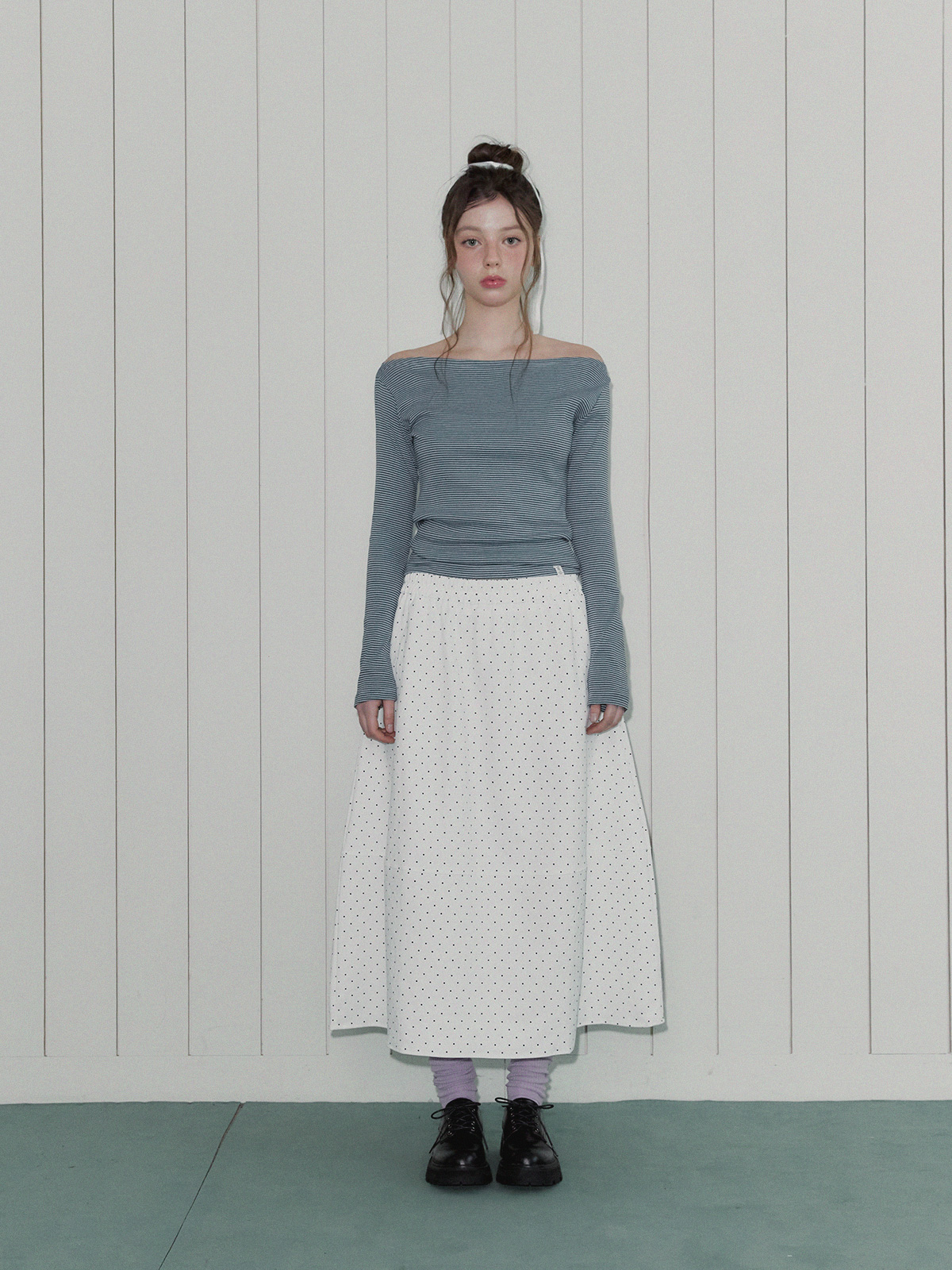 뮤즌 스트라이프 오프숄더 긴팔 티셔츠