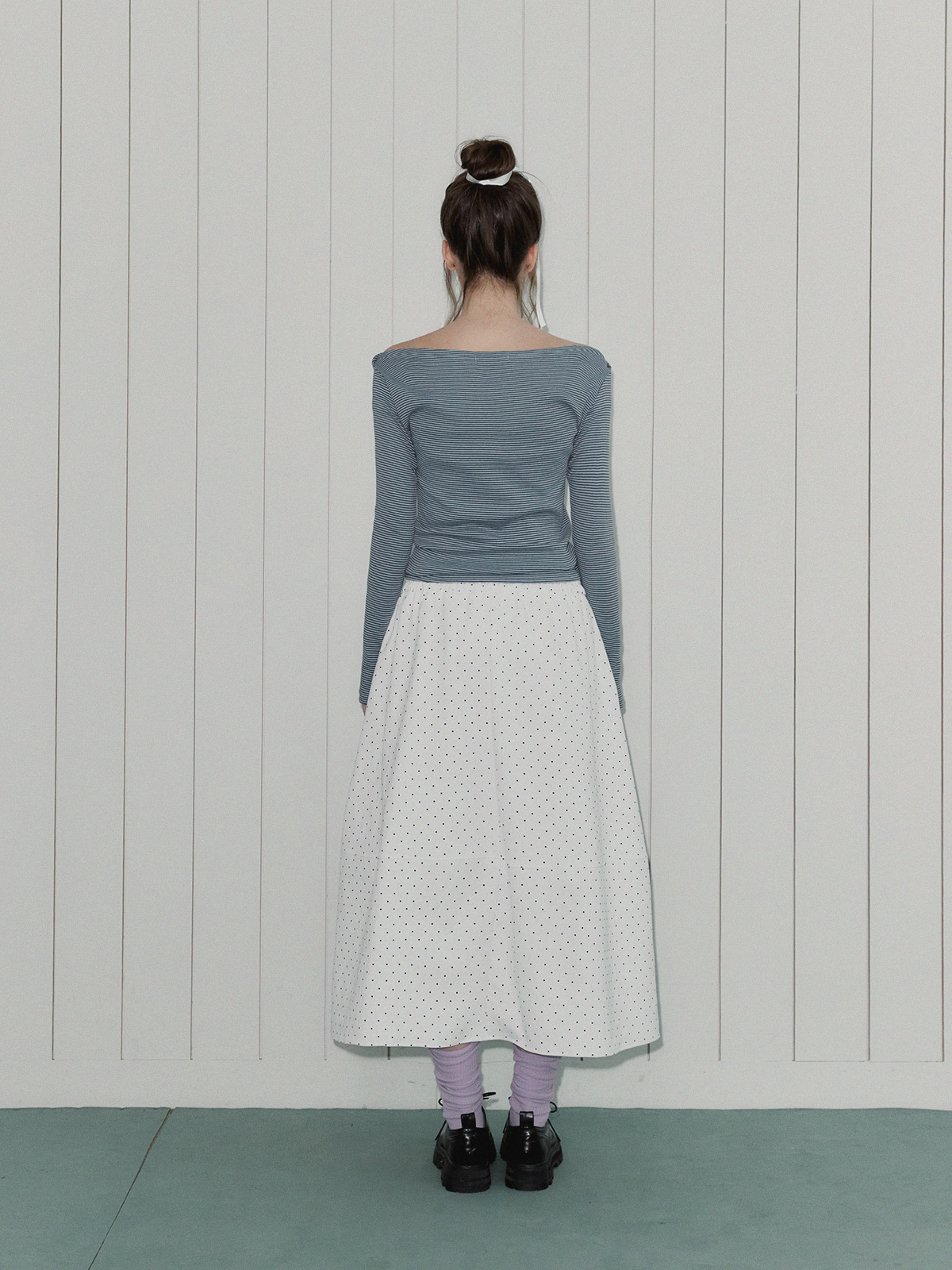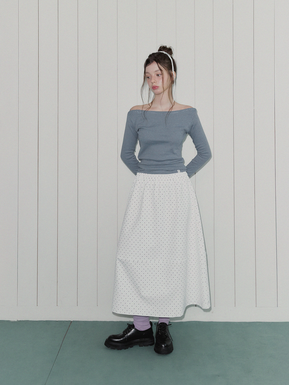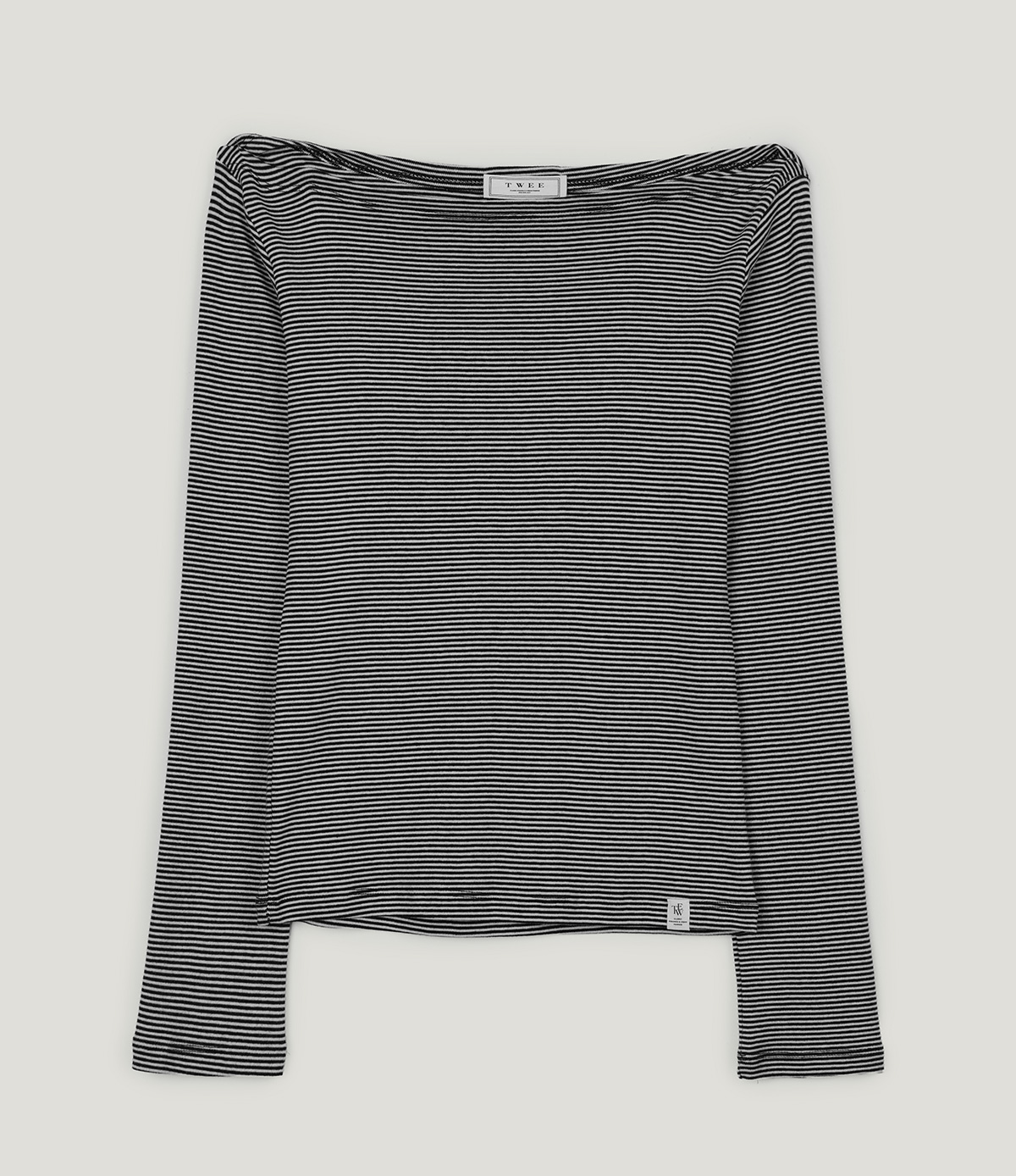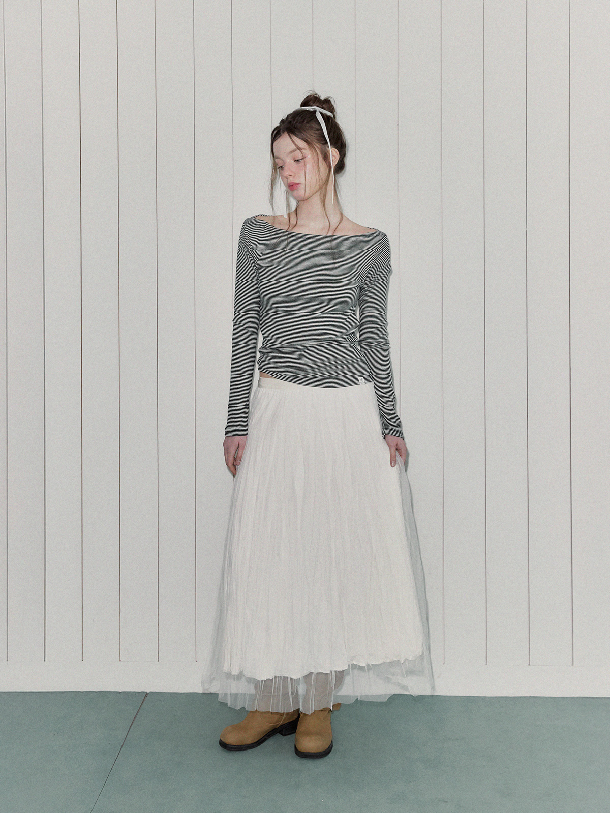뮤즌 스트라이프 오프숄더 긴팔 티셔츠