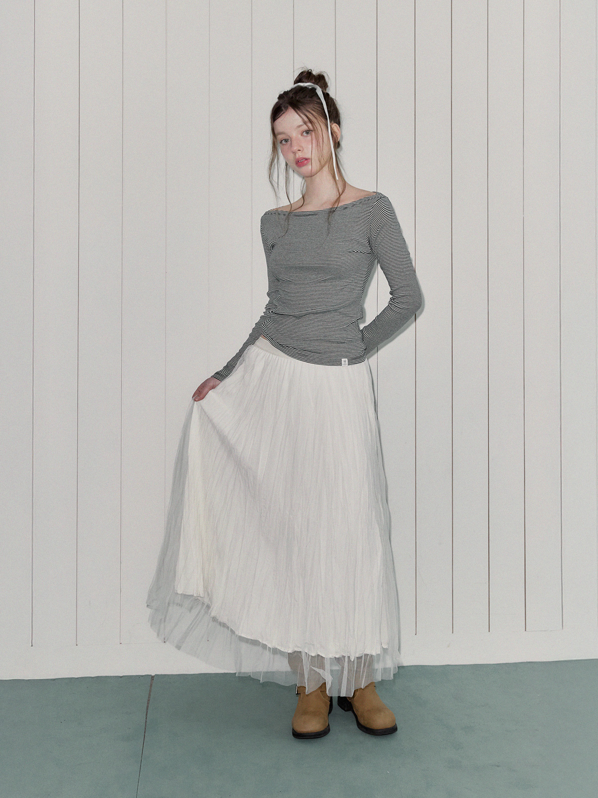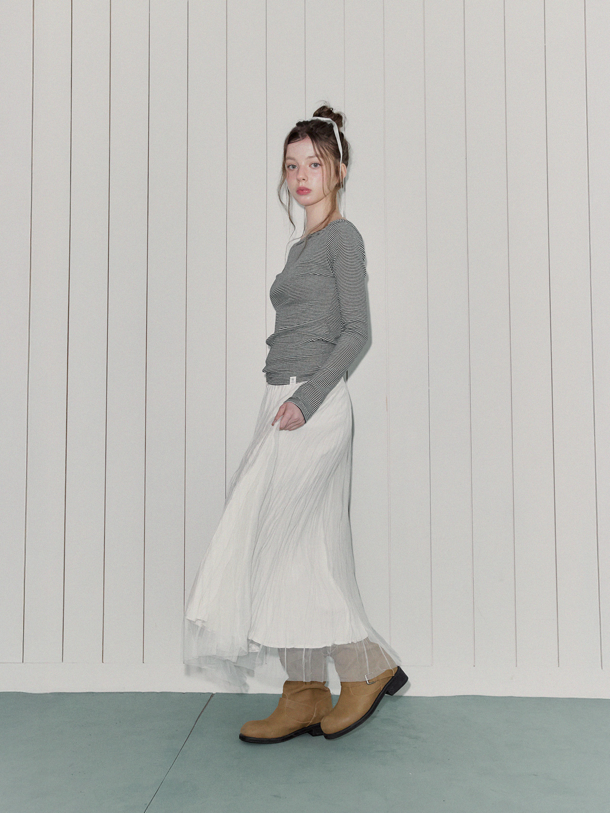 아르보르 리브드 레이어드 스커트 팬츠 [그레이]