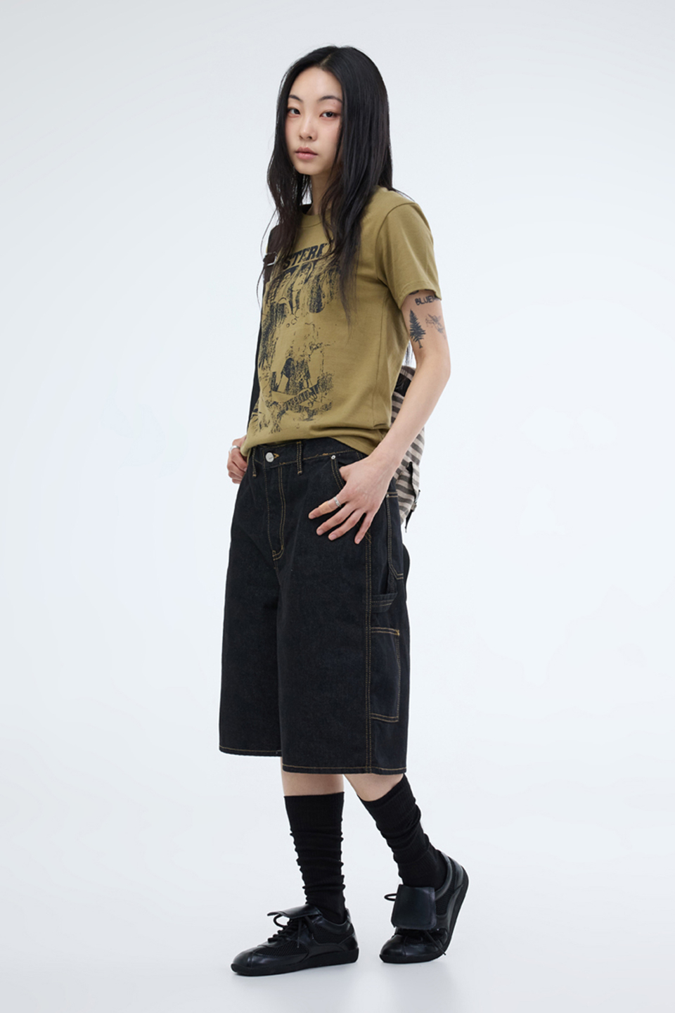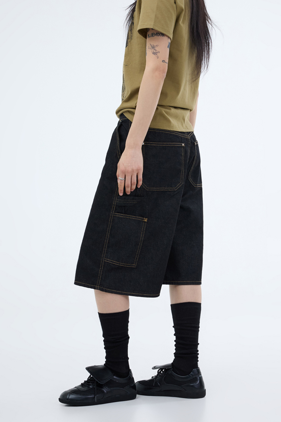 WESTERN CARPENTER BERMUDA DENIM SHORTS-2COLOR