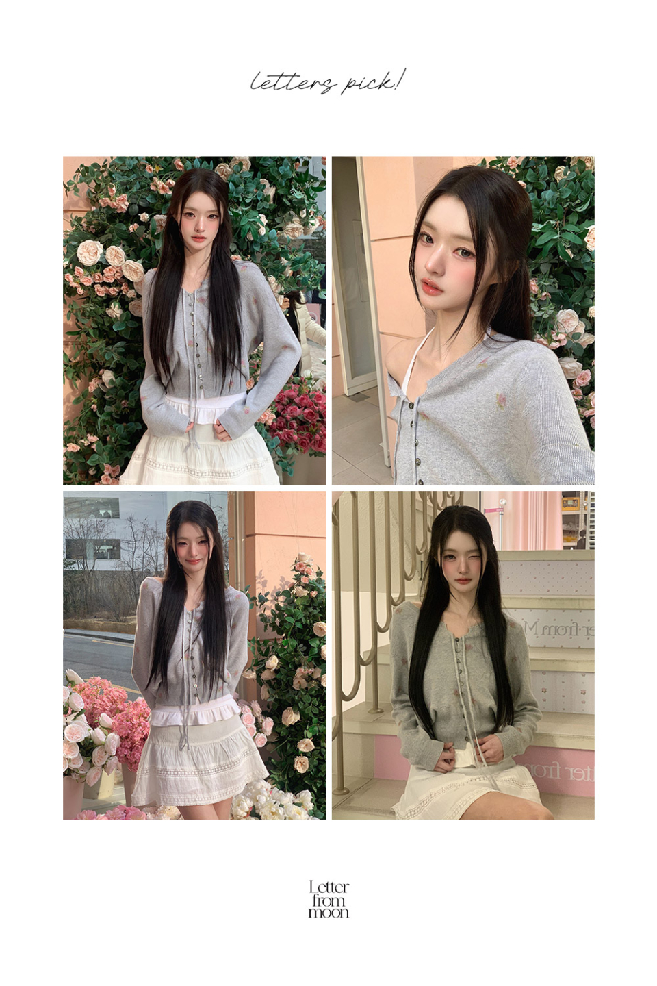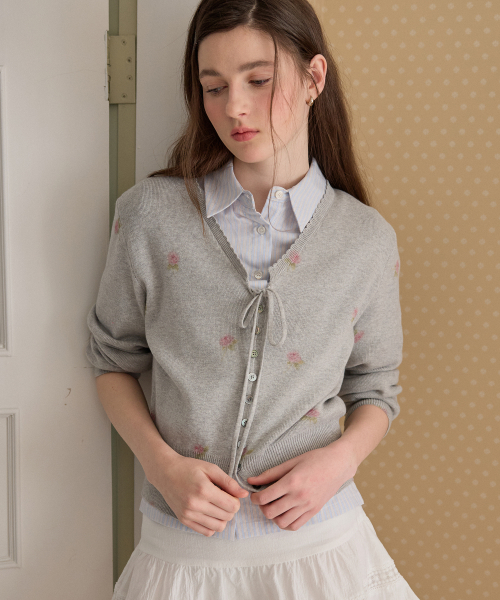 로리 플라워 스칼럽 가디건 ( 그레이 )