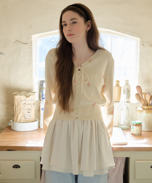 로리 플라워 스칼럽 가디건 ( 크림 )