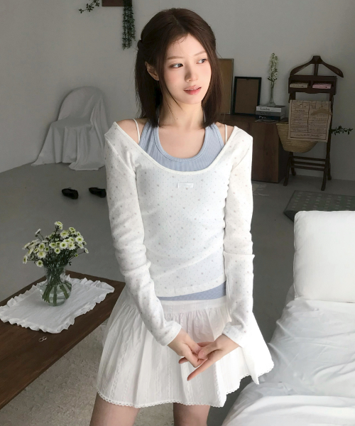 브이넥 레이스 랩 티셔츠 ( 화이트 )