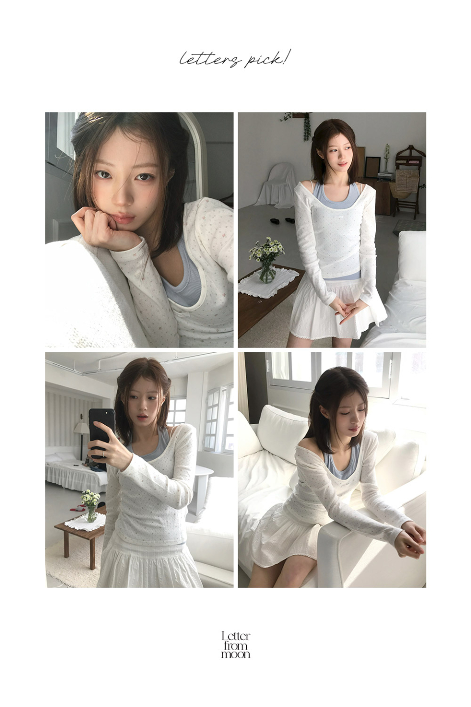 레터프롬문(LETTER FROM MOON)은 이름에 어울리는 로맨틱&레트로 무드의 옷을 만드는 브랜드입니다. 여성 고객을 타깃으로 아이템마다 레터프롬문의 개성이 들어가게끔 정성을 다해 디자인합니다. 특히 디자이너 브랜드의 의류는 가성비가 좋지 않다는 편견을 깨기 위해 합리적인 가격의 차별화된 아이템을 자신 있게 선보입니다.